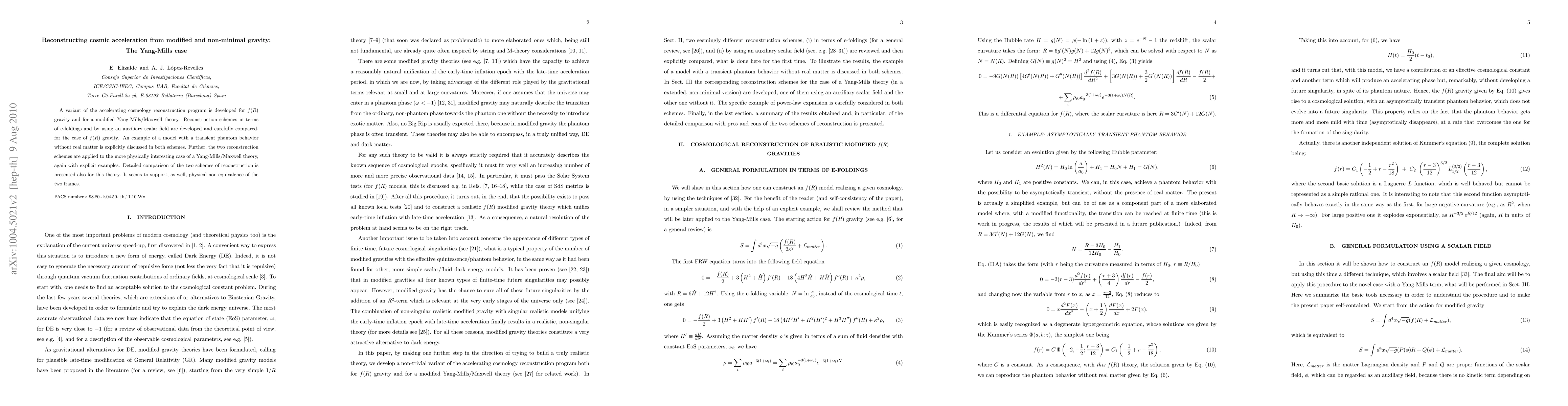 This paper develops reconstruction schemes for modified gravity models, specifically $f(R)$ gravity and a modified Yang-Mills/Maxwell theory, to understand cosmic acceleration. It contrasts two reconstruction methods, finding support for their physical non-equivalence through detailed comparisons and explicit examples of transient phantom behavior.