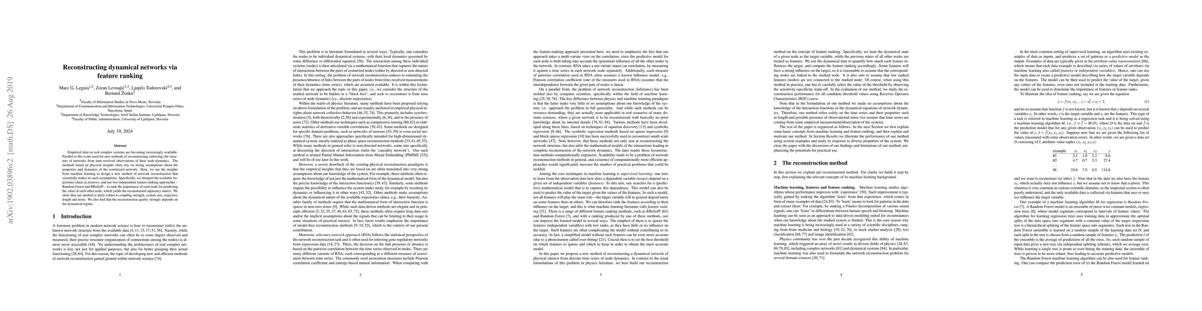 Researchers developed a method to reconstruct complex networks from time-resolved observations without relying on physical assumptions, using machine learning feature ranking approaches. The method shows promising results in robustness and reconstruction quality, but its performance depends on the dynamical regime of the system.