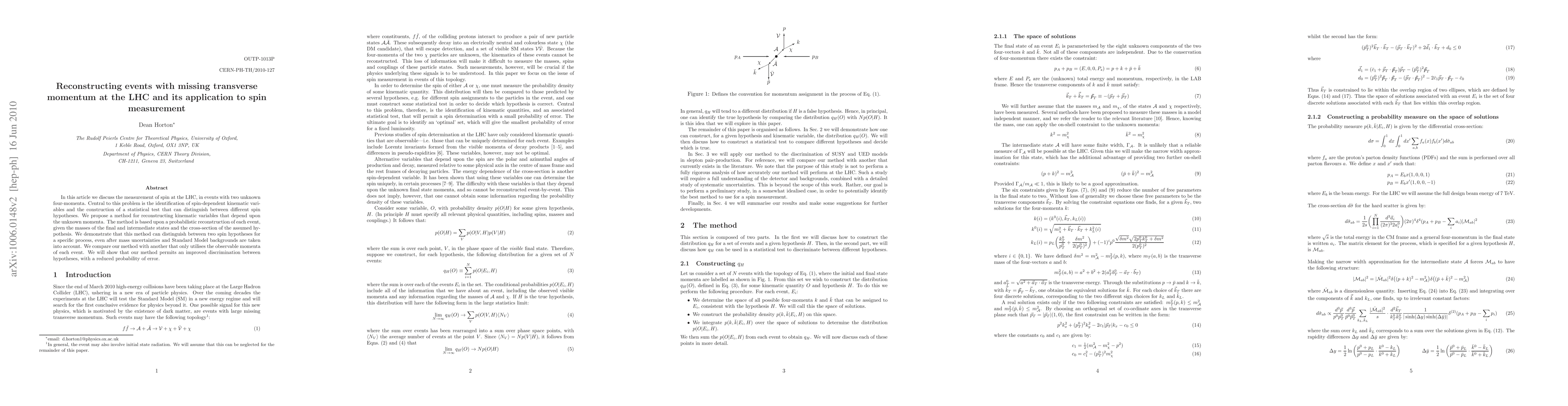 In this article we discuss the measurement of spin at the LHC, in events with two unknown four-momenta. Central to this problem is the identification of spin-dependent kinematic variables and the construction of a statistical test that can distinguish between different spin hypotheses. We propose a method for reconstructing kinematic variables that depend upon the unknown momenta. The method is based upon a probabilistic reconstruction of each event, given the masses of the final and intermediate states and the cross-section of the assumed hypothesis. We demonstrate that this method can distinguish between two spin hypotheses for a specific process, even after mass uncertainties and Standard Model backgrounds are taken into account. We compare our method with another that only utilises the observable momenta of each event. We will show that our method permits an improved discrimination between hypotheses, with a reduced probability of error.