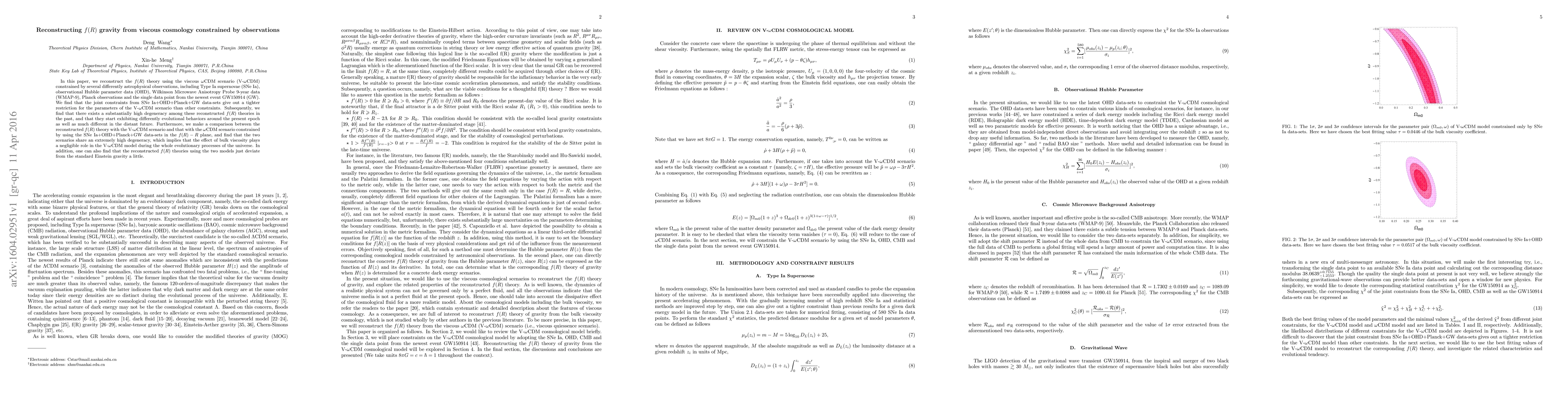 In this paper, we reconstruct the $f(R)$ theory using the viscous $\omega$CDM scenario (V-$\omega$CDM) constrained by several differently astrophysical observations, including Type Ia supernovae (SNe Ia), observational Hubble parameter data (OHD), Wilkinson Microwave Anisotropy Probe 9-year data (WMAP-9), Planck observations and the single data point from the newest event GW150914 (GW). We find that the joint constraints from SNe Ia+OHD+Planck+GW data-sets give out a tighter restriction for the parameters of the V-$\omega$CDM scenario than other constraints. Subsequently, we find that there exists a substantially high degeneracy among these reconstructed $f(R)$ theories in the past, and that they start exhibiting differently evolutional behaviors around the present epoch as well as much different in the distant future. Furthermore, we make a comparison between the reconstructed $f(R)$ theory with the V-$\omega$CDM scenario and that with the $\omega$CDM scenario constrained by using the SNe Ia+OHD+Planck+GW data-sets in the $f(R)-R$ plane, and find that the two scenarios share an extremely high degeneracy, which implies that the effect of bulk viscosity plays a negligible role in the V-$\omega$CDM model during the whole evolutionary processes of the universe. In addition, one can also find that the reconstructed $f(R)$ theories using the two models just deviate from the standard Einstein gravity a little.