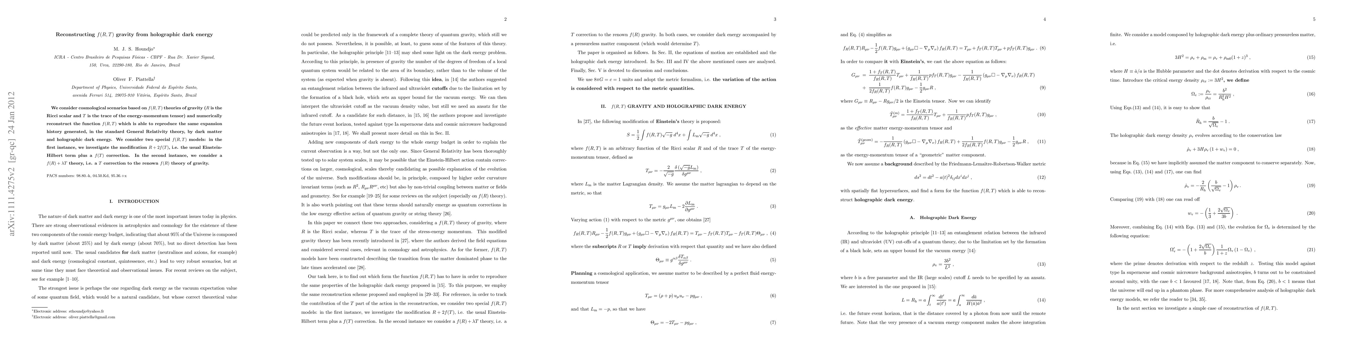 The paper presents a numerical method for reconstructing f(R,T) functions from holographic dark energy, providing a bridge between modified gravity theories and dark energy models.