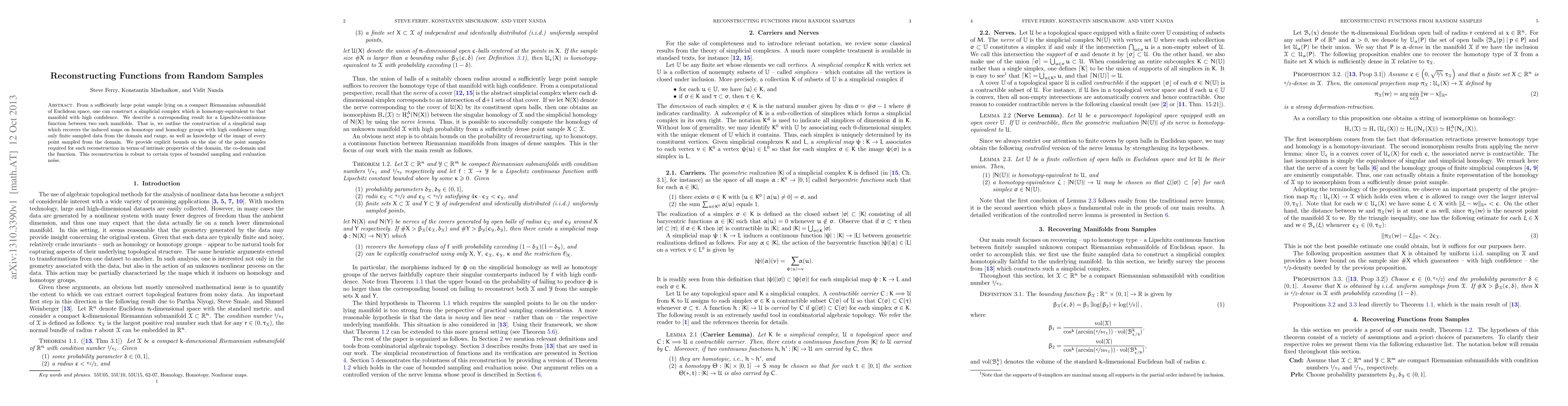 This paper reconstructs functions from random samples on Riemannian submanifolds by constructing a simplicial complex that is homotopy-equivalent to the original manifold, and a simplicial map that recovers induced maps on homotopy and homology groups accurately, given sufficient sample size and bounded noise.