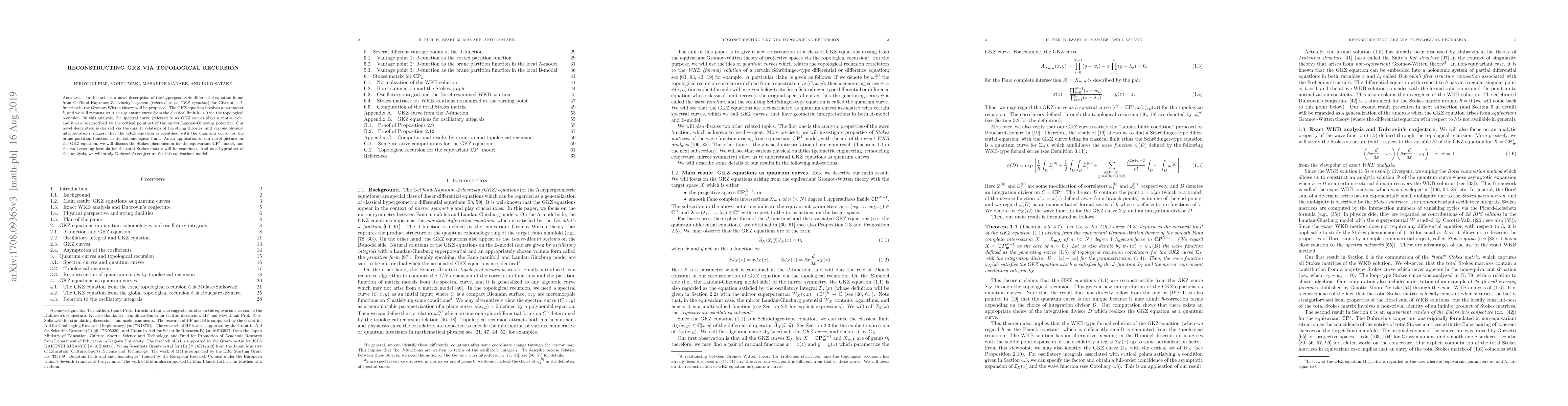 This paper proposes a novel reconstruction of the GKZ hypergeometric differential equation using topological recursion, identifying it as the quantum curve for the brane partition function in the cohomological limit. The analysis also explores the Stokes matrix and wall-crossing formula for the equivariant $\mathbb{C}\textbf{P}^{1}$ model, and examines Dubrovin's conjecture as a byproduct.
