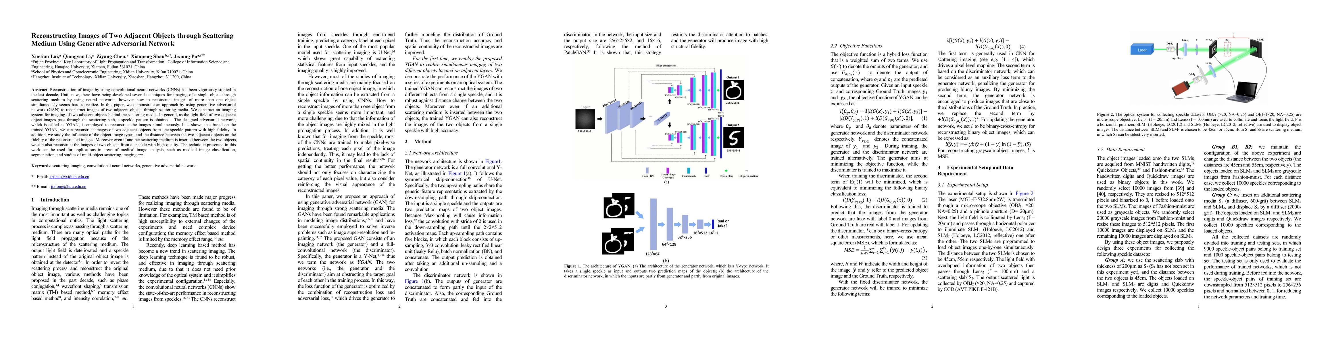 This research introduces YGAN, a Generative Adversarial Network, to reconstruct images of two adjacent objects simultaneously through scattering media, demonstrating high fidelity in image reconstruction. The methodology shows promise for applications in medical image analysis.