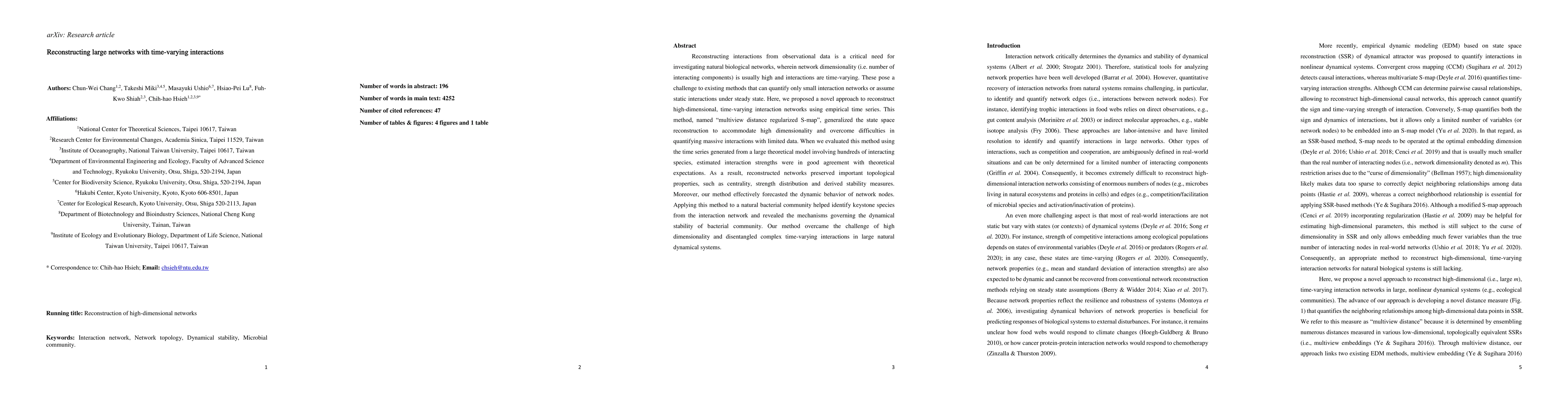 This paper proposes a novel "multiview distance regularized S-map" method to reconstruct high-dimensional, time-varying interaction networks from empirical time series. The method successfully identified keystone species and mechanisms of stability in a bacterial community, demonstrating its effectiveness in handling large, complex natural dynamical systems.