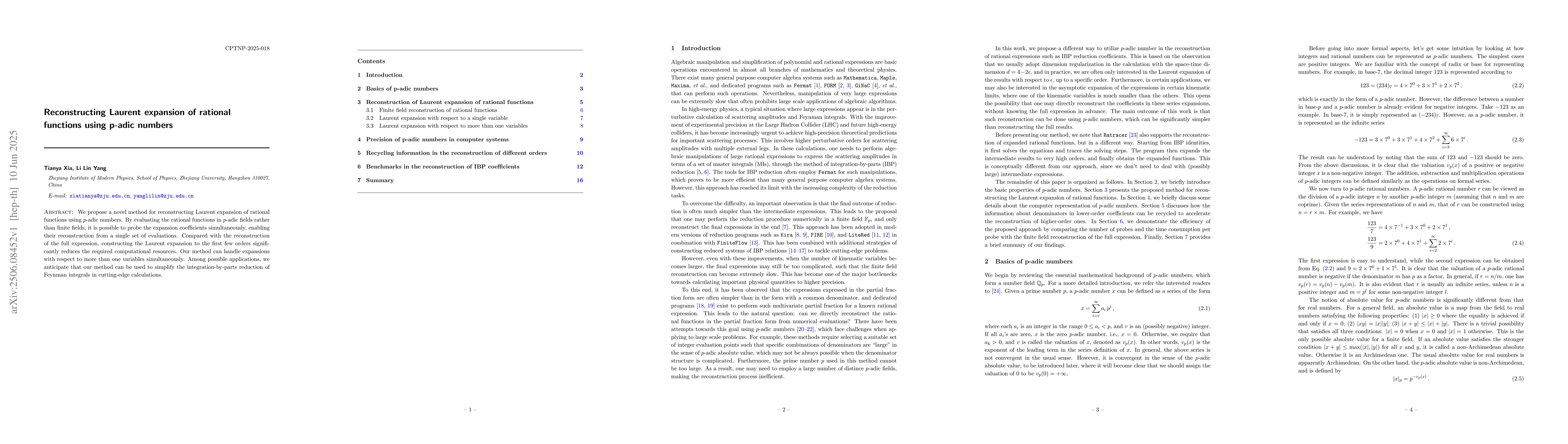 Researchers developed a method to reconstruct Laurent expansions of rational functions using p-adic numbers, reducing computational resources needed for expansion construction.
