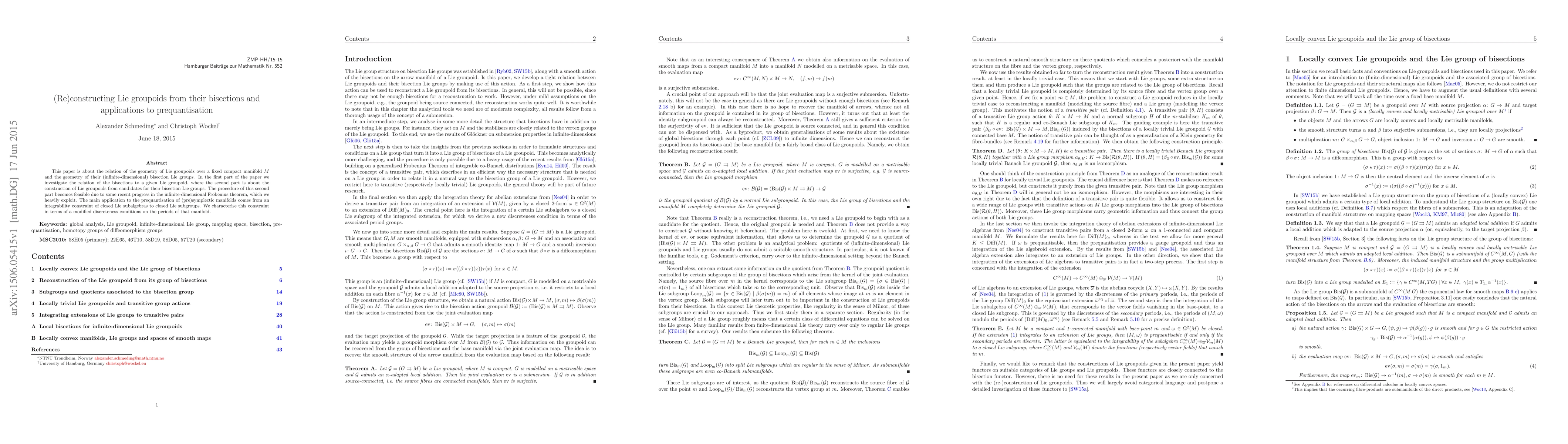 This paper is about the relation of the geometry of Lie groupoids over a fixed compact manifold and the geometry of their (infinite-dimensional) bisection Lie groups. In the first part of the paper we investigate the relation of the bisections to a given Lie groupoid, where the second part is about the construction of Lie groupoids from candidates for their bisection Lie groups. The procedure of this second part becomes feasible due to some recent progress in the infinite-dimensional Frobenius theorem, which we heavily exploit. The main application to the prequantisation of (pre)symplectic manifolds comes from an integrability constraint of closed Lie subalgebras to closed Lie subgroups. We characterise this constraint in terms of a modified discreteness conditions on the periods of that manifold.