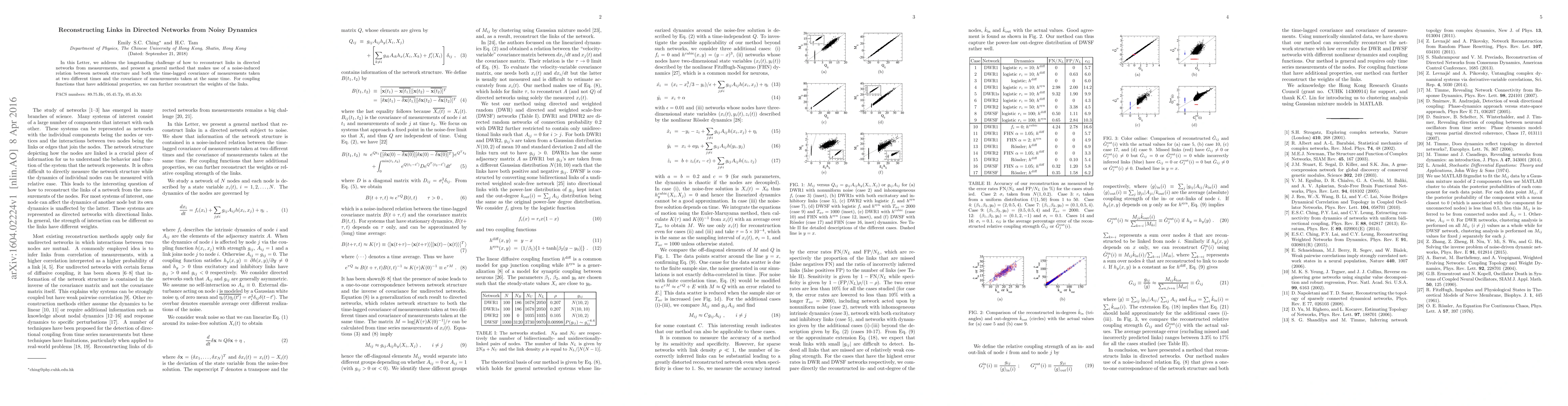 In this Letter, we address the longstanding challenge of how to reconstruct links in directed networks from measurements, and present a general method that makes use of a noise-induced relation between network structure and both the time-lagged covariance of measurements taken at two different times and the covariance of measurements taken at the same time. For coupling functions that have additional properties, we can further reconstruct the weights of the links.