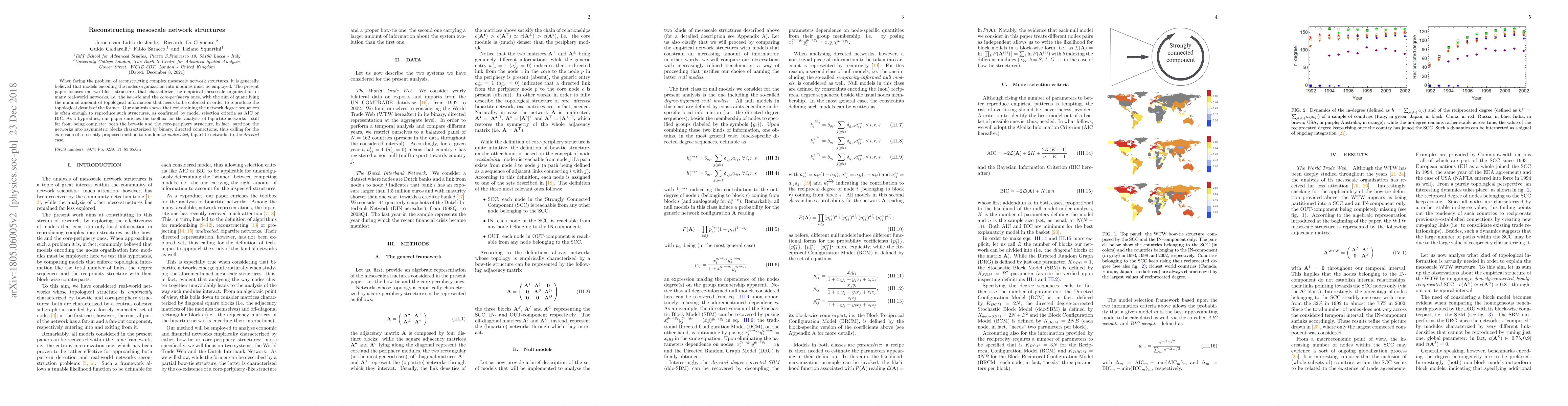 The paper presents a methodology for reconstructing mesoscale network structures using degree sequence constraints, comparing block models (like SBM and DCM) with non-block models (like DRG) and analyzing real-world networks such as the World Trade Web (WTW) and the Dutch Interbank Network (DIN).