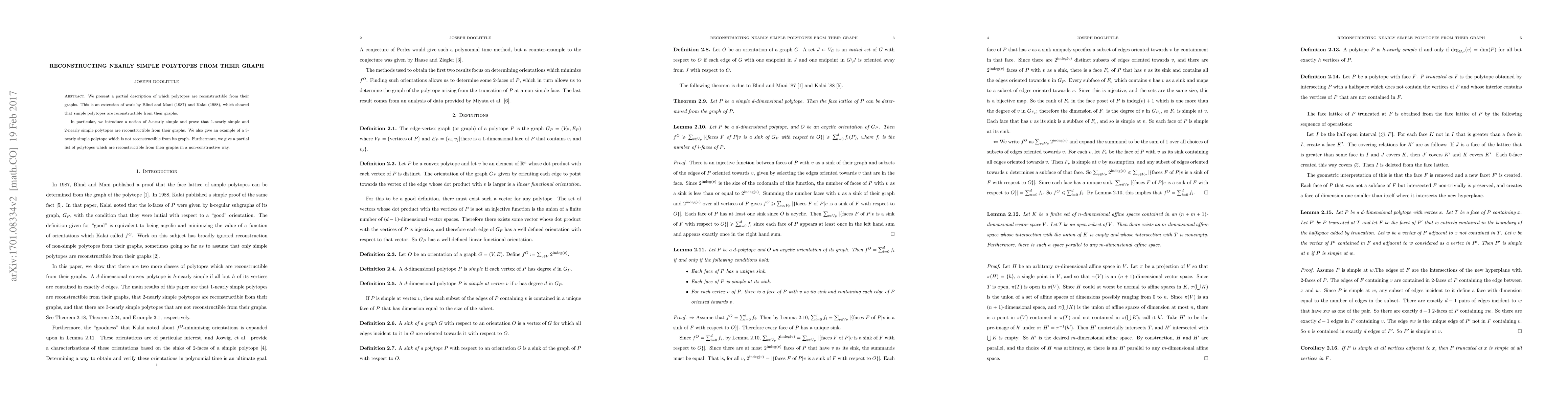 This paper extends previous work on polytope reconstructibility, showing that 1-nearly simple and 2-nearly simple polytopes can be reconstructed from their graphs, while providing an example of a 3-nearly simple polytope that cannot. It also offers a non-constructive partial list of reconstructible polytopes.