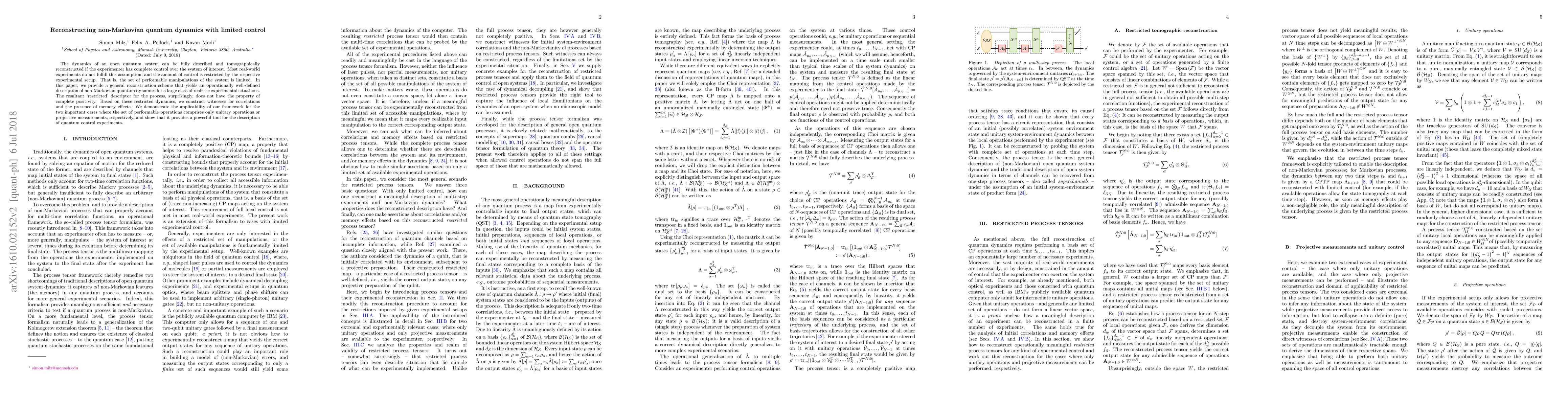 The dynamics of an open quantum system can be fully described and tomographically reconstructed if the experimenter has complete control over the system of interest. Most real-world experiments do not fulfill this assumption, and the amount of control is restricted by the experimental set-up. That is, the set of performable manipulations of the system is limited. For instance, imagine a set-up where unitary operations are easy to make, but only one measurement at the end of the experiment is allowed. In this paper, we provide a general reconstruction scheme that yields operationally well-defined dynamics for any conceivable kind of experimental situation. If one additional operation can be performed, these `restricted' dynamics allow for the construction of witnesses for initial correlations and the presence of memory effects. We demonstrate the applicability of our framework for the the two important cases where the set of performable operations comprises only unitary operations or projective measurements, respectively, and show that it provides a powerful tool for the description of quantum control experiments.