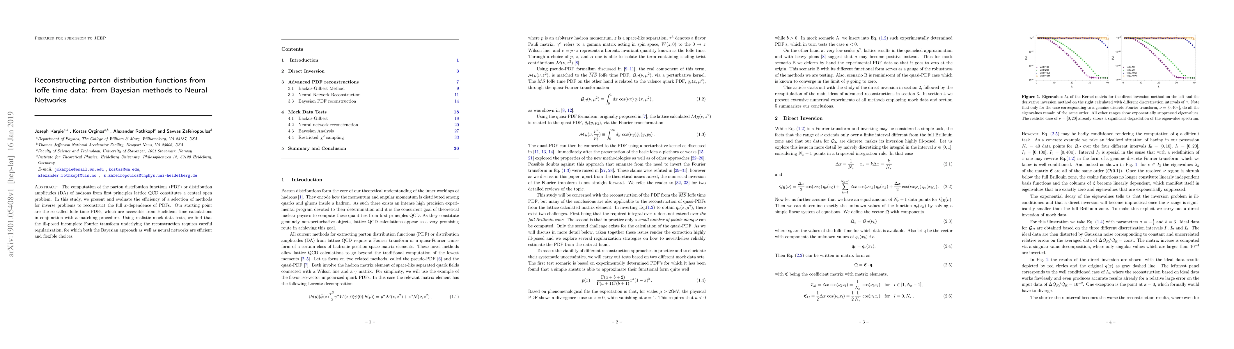 This paper explores methods to reconstruct parton distribution functions from Ioffe time data using Bayesian approaches and neural networks. The study finds that both techniques effectively address the ill-posed inverse problem inherent in the incomplete Fourier transform required for reconstructing the full $x$-dependence of parton distribution functions.