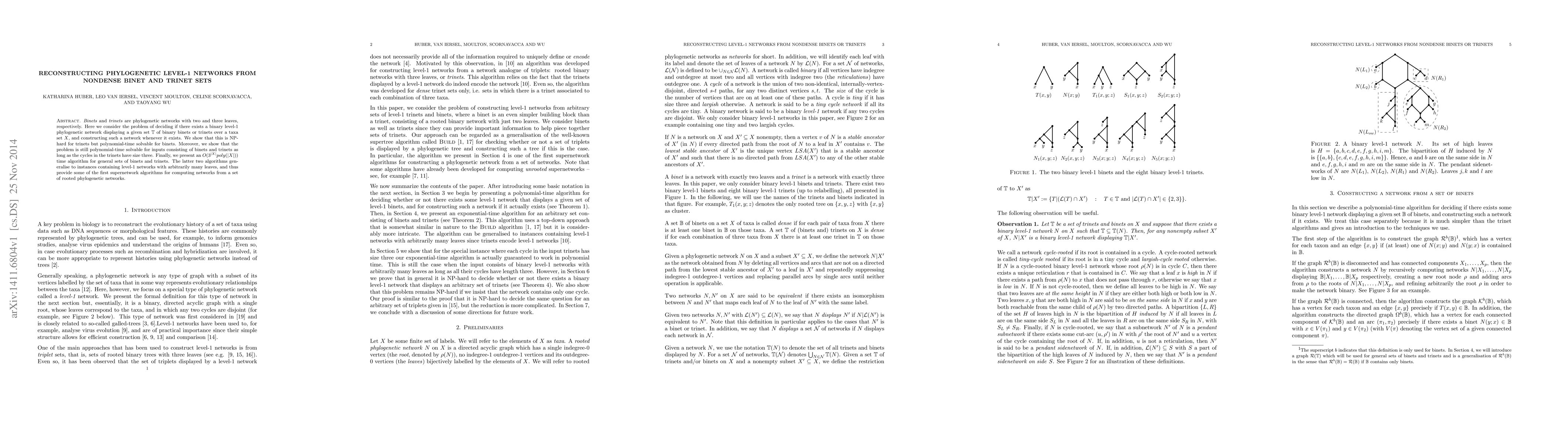 This paper addresses the problem of reconstructing binary level-1 phylogenetic networks from given sets of binets and trinets, proving the problem is NP-hard for trinets but solvable in polynomial time for binets. It also provides algorithms for mixed binets and trinets, and extends the approach to networks with more leaves.