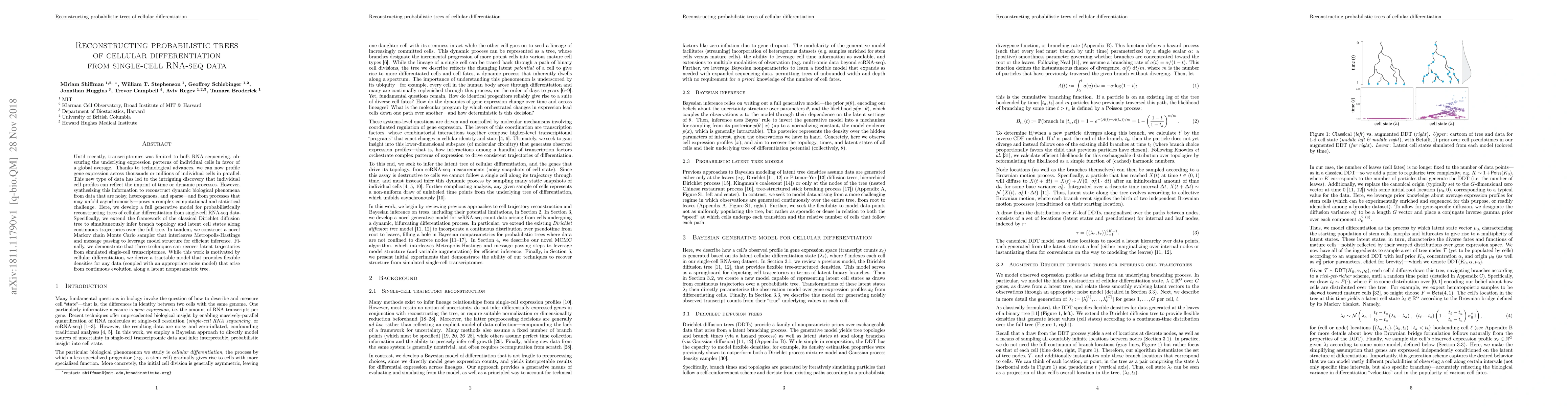 This paper develops a generative model to reconstruct probabilistic trees of cellular differentiation from single-cell RNA-seq data, extending the Dirichlet diffusion tree framework to infer branch topology and latent cell states. It introduces a novel Markov chain Monte Carlo sampler for efficient inference and demonstrates its effectiveness on simulated data.