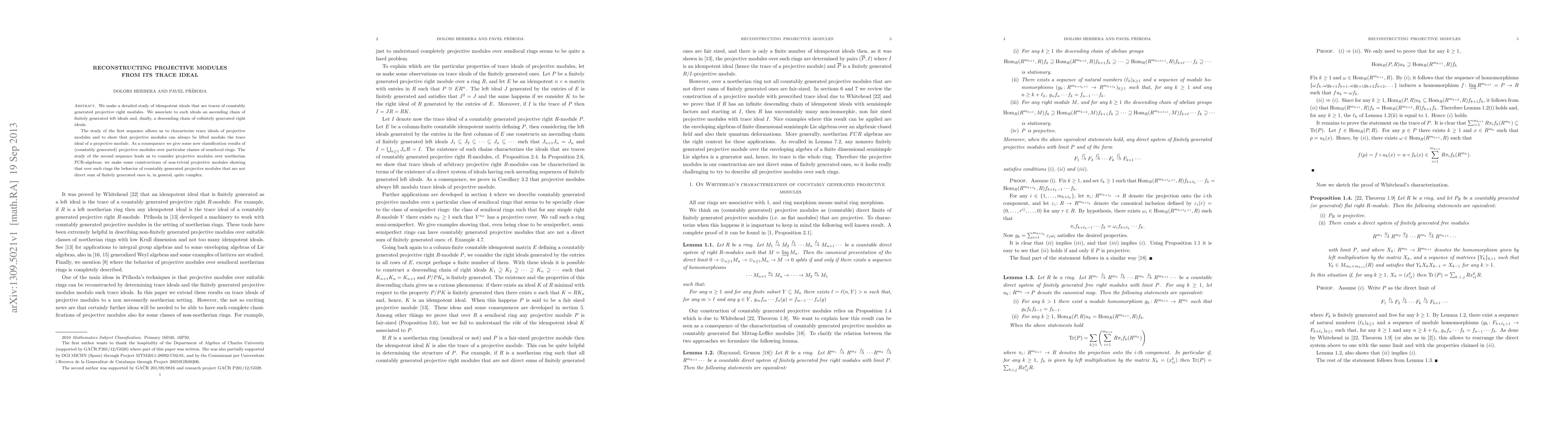 This paper studies idempotent ideals that trace countably generated projective modules, linking them to ascending chains of finitely generated left ideals and descending chains of cofinitely generated right ideals. It characterizes these trace ideals and demonstrates that projective modules can be lifted modulo their trace ideals, leading to new classification results for projective modules over semilocal rings.