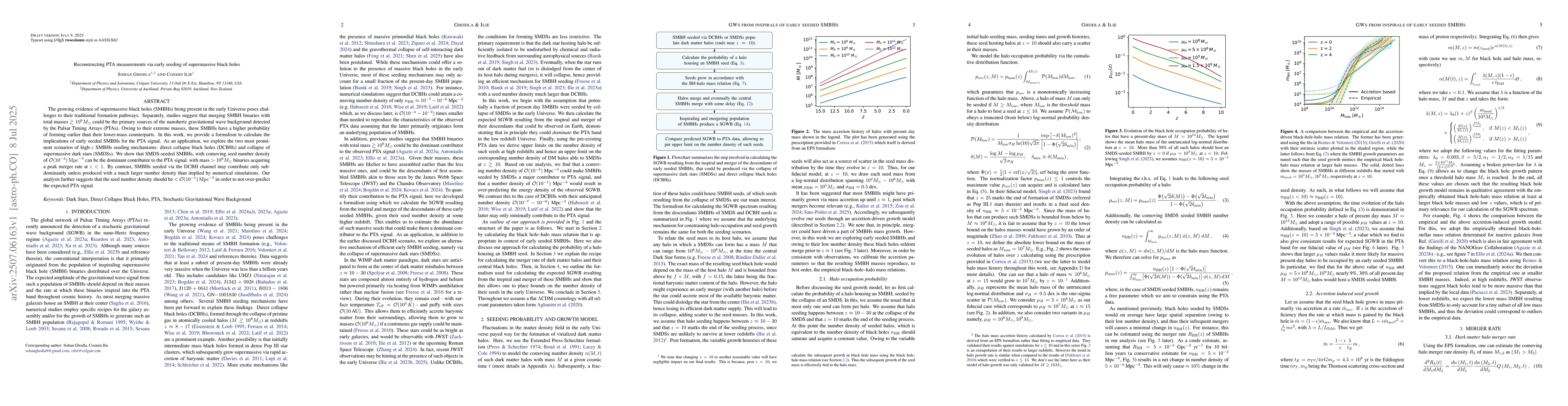 The growing evidence of supermassive black holes (SMBHs) being present in the early Universe poses challenges to their traditional formation pathways. Separately, studies suggest that merging SMBH binaries with total masses $\gtrsim 10^9 M_\odot$ could be the primary sources of the nanohertz gravitational wave background detected by the Pulsar Timing Arrays (PTAs). Owing to their extreme masses, these SMBHs have a higher probability of forming earlier than their lower-mass counterparts. In this work, we provide a formalism to calculate the implications of early seeded SMBHs for the PTA signal. As an application, we explore the two most prominent scenarios of high-$z$ SMBHs seeding mechanisms: direct collapse black holes (DCBHs) and collapse of supermassive dark stars (SMDSs). We show that SMDS-seeded SMBHs, with comoving seed number density of $\mathcal{O}(10^{-3}) \, {\rm Mpc}^{-3}$ can be the dominant contributor to the PTA signal, with mass $> 10^9 M_\odot$ binaries acquiring a peak merger rate at $z< 1$. By contrast, SMBHs seeded via the DCBH channel may contribute only sub-dominantly unless produced with a much larger number density than implied by numerical simulations. Our analysis further suggests that the seed number density should be $< \mathcal{O}(10^{-1}) \, {\rm Mpc}^{-3}$ in order to not over-predict the expected PTA signal.