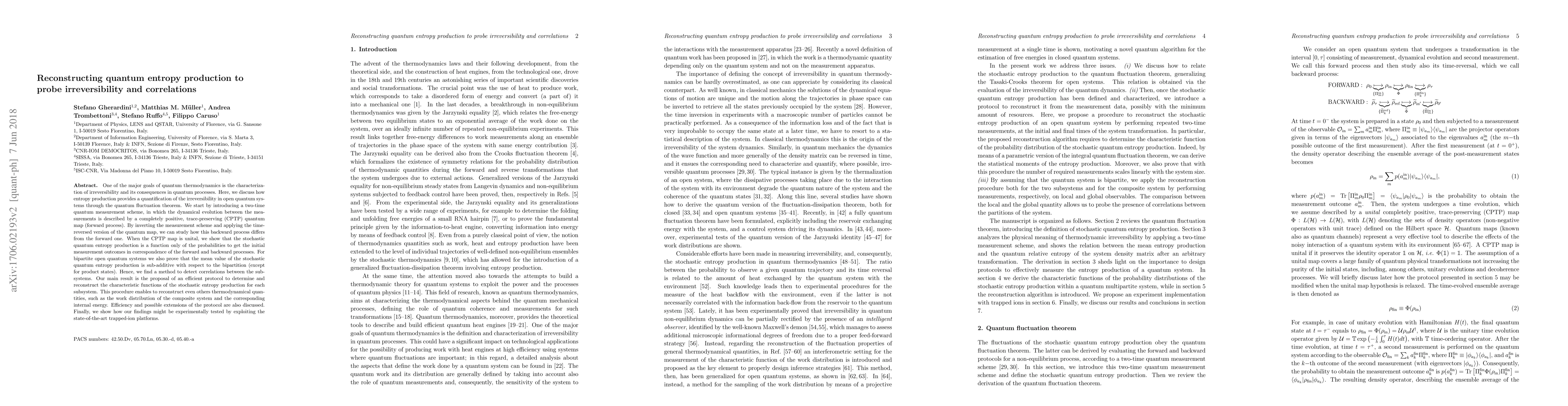This paper proposes a method to quantify irreversibility and detect correlations in open quantum systems using entropy production. It introduces a two-time quantum measurement scheme and demonstrates how to reconstruct the characteristic functions of stochastic quantum entropy production, enabling the determination of thermodynamic quantities and potential experimental testing on trapped-ion platforms.