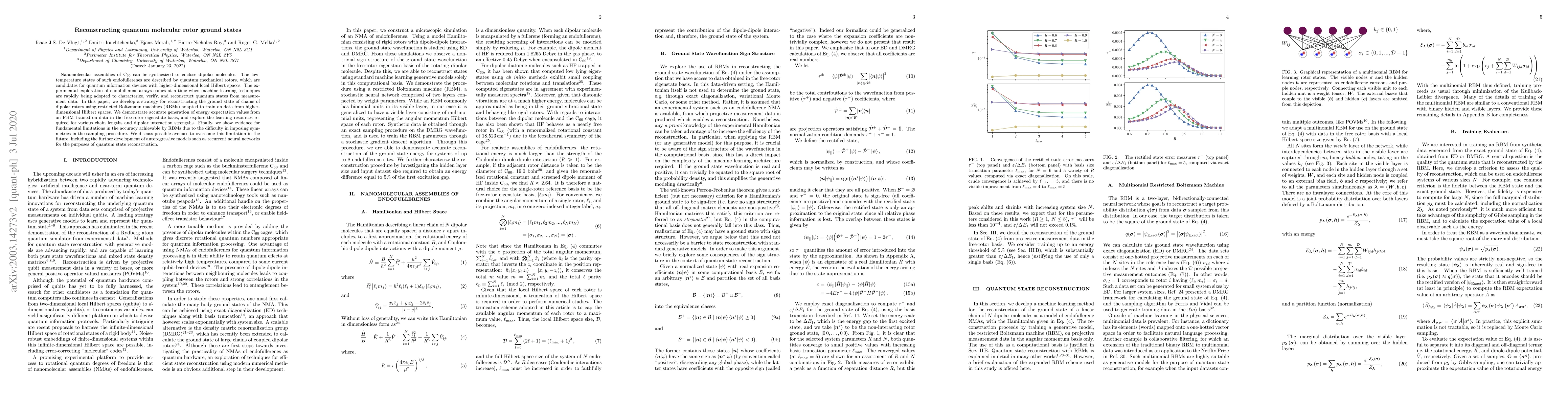 Researchers developed a strategy to reconstruct quantum states using machine learning techniques, demonstrating accurate generation of energy expectation values for nanomolecular assemblies, but also identified fundamental limitations in the approach due to symmetry issues.