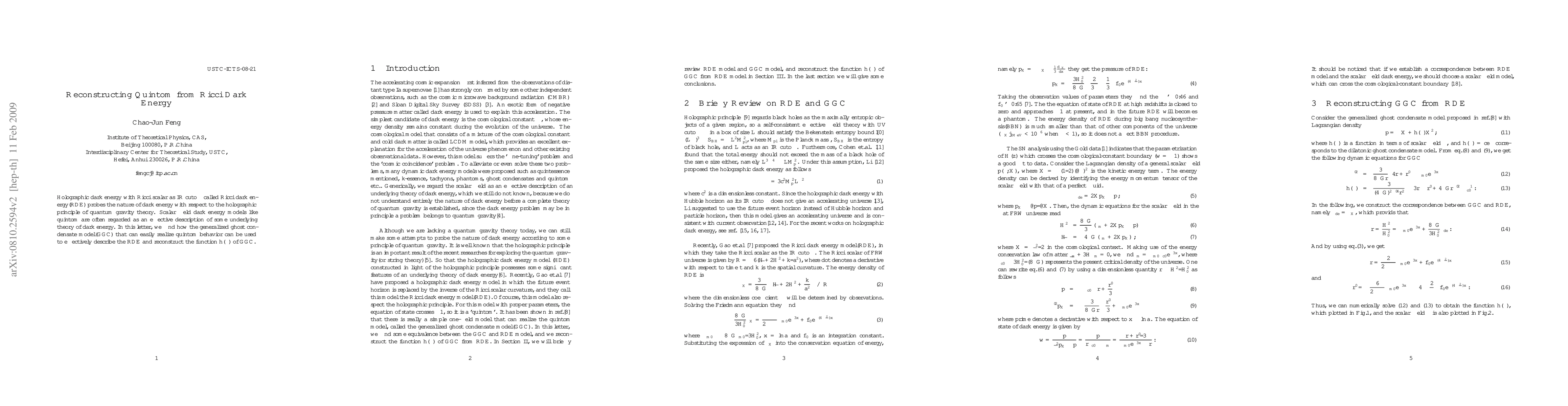 This paper explores the reconstruction of the quintom model using Ricci dark energy (RDE) as the underlying field theory, demonstrating how the generalized ghost condensate model (GGC) can effectively describe the quintom behavior and reconstruct the function $h(\phi)$. The study utilizes the holographic principle of quantum gravity to investigate the nature of dark energy.