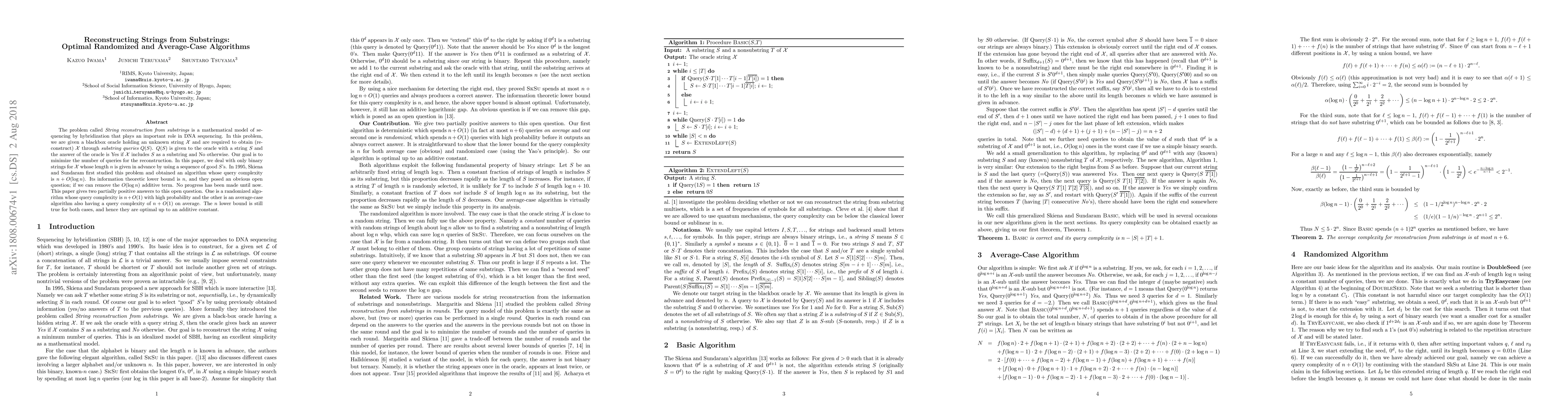 This paper presents optimal randomized and average-case algorithms for reconstructing binary strings from substring queries, addressing an open question from 1995. It achieves query complexities of $n+O(1)$ with high probability and on average, respectively, resolving the $O(\log n)$ additive term issue.