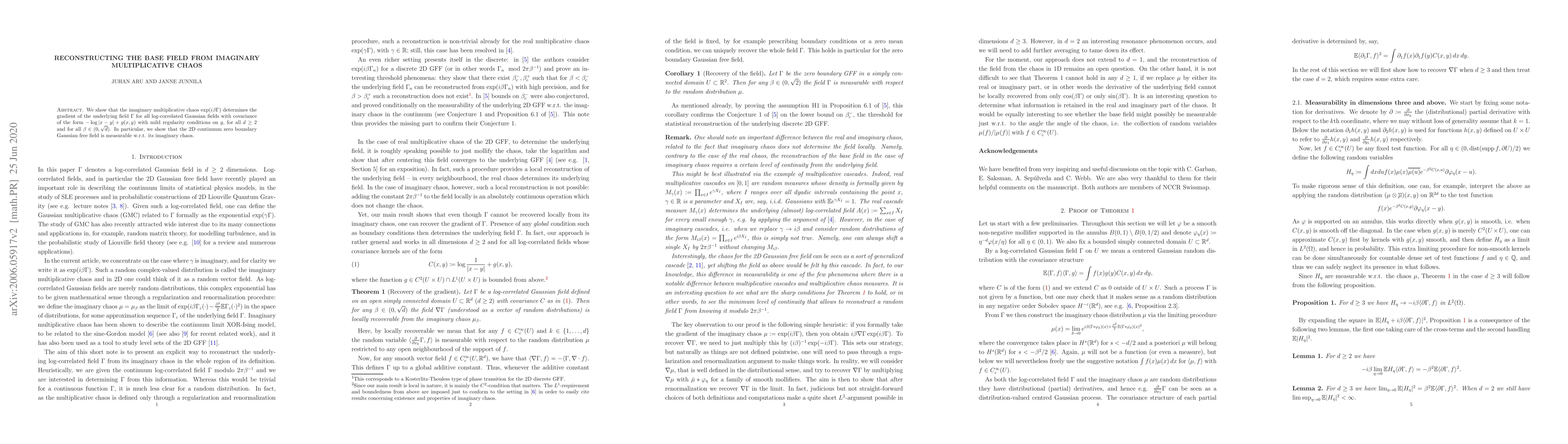 This paper demonstrates that the imaginary multiplicative chaos $\exp(i\beta \Gamma)$ can reconstruct the gradient of the underlying field $\Gamma$ for log-correlated Gaussian fields, and it shows that the 2D continuum zero boundary Gaussian free field is measurable with respect to its imaginary chaos.