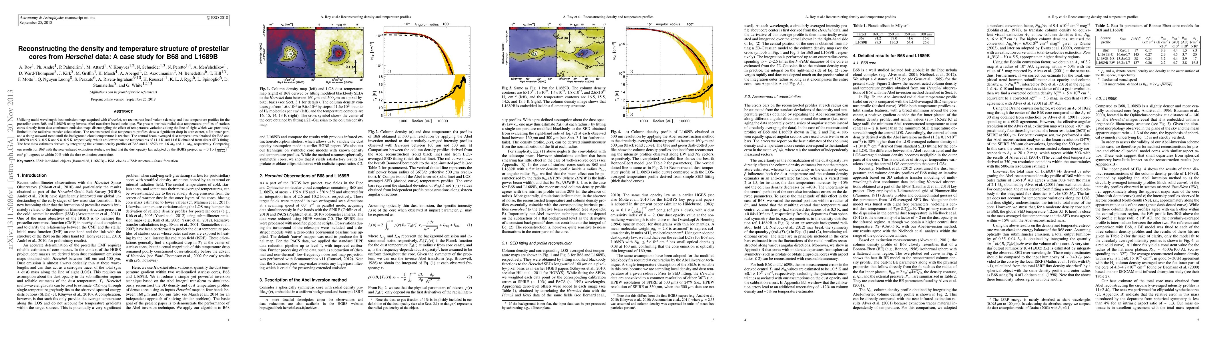 Researchers reconstructed the temperature and density of two prestellar cores using Herschel data, finding lower temperatures than previously estimated, with mass estimates of 1.6M_sol and 11M_sol.