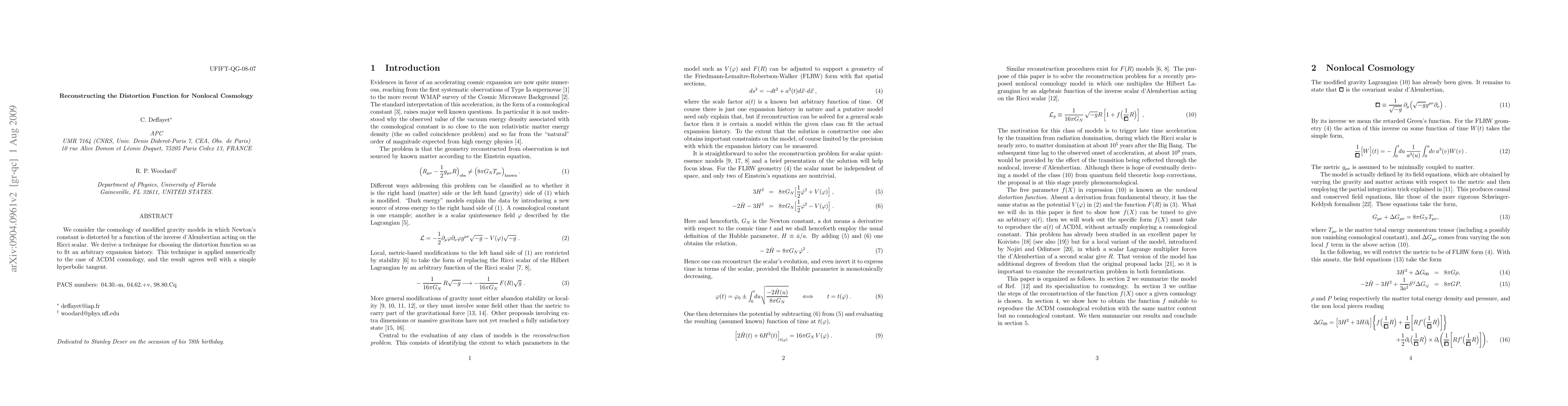 We consider the cosmology of modified gravity models in which Newton's constant is distorted by a function of the inverse d'Alembertian acting on the Ricci scalar. We derive a technique for choosing the distortion function so as to fit an arbitrary expansion history. This technique is applied numerically to the case of LambdaCDM cosmology, and the result agrees well with a simple hyperbolic tangent.