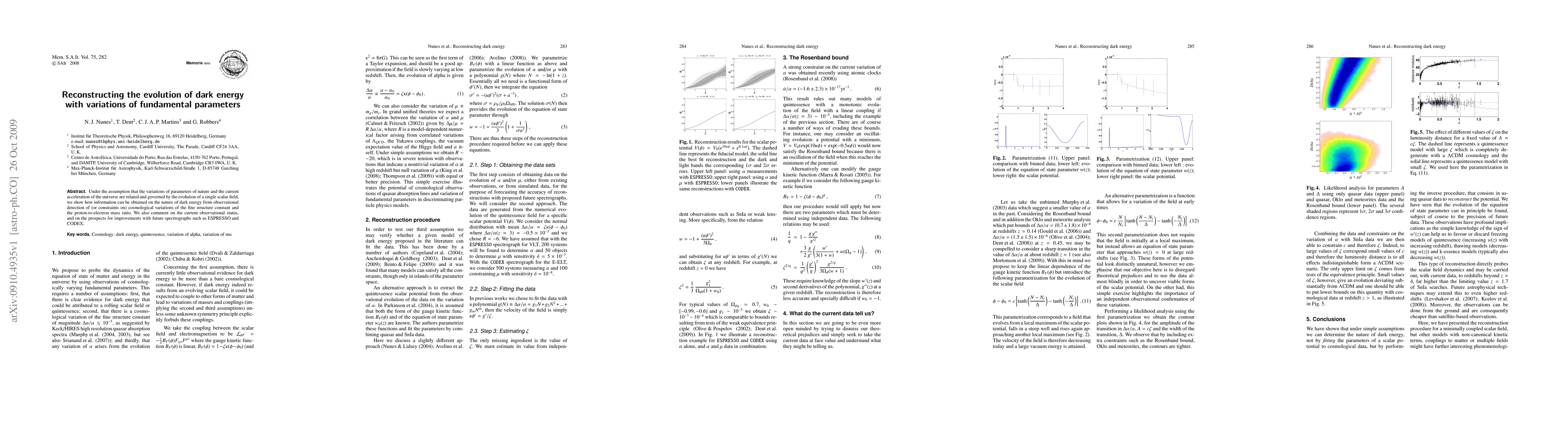 Under the assumption that the variations of parameters of nature and the current acceleration of the universe are related and governed by the evolution of a single scalar field, we show how information can be obtained on the nature of dark energy from observational detection of (or constraints on) cosmological variations of the fine structure constant and the proton-to-electron mass ratio. We also comment on the current observational status, and on the prospects for improvements with future spectrographs such as ESPRESSO and CODEX.