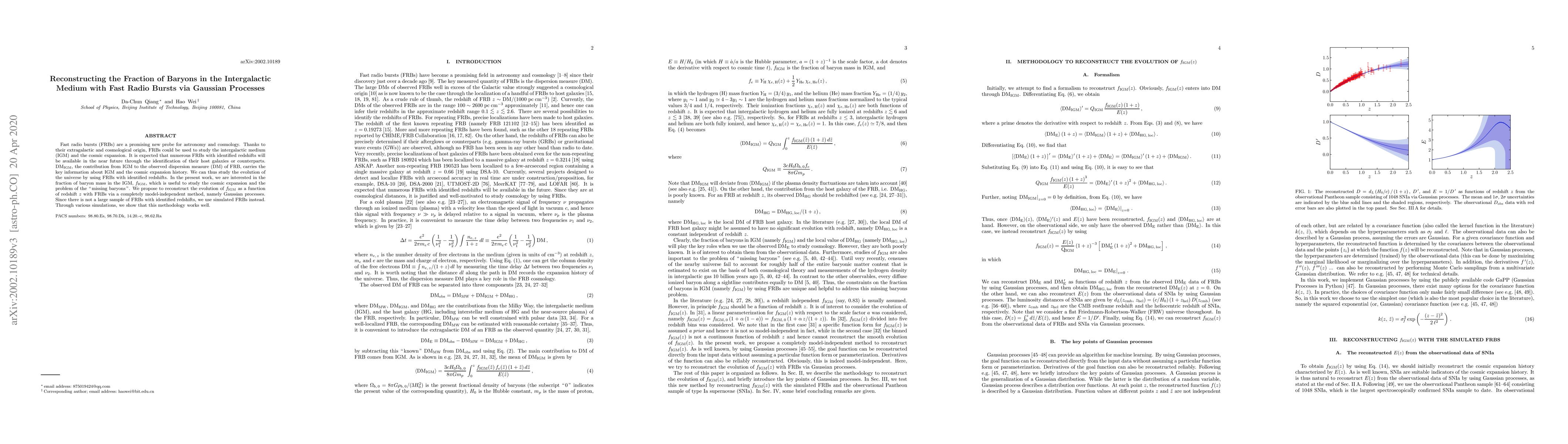 This paper proposes using fast radio bursts (FRBs) and Gaussian processes to reconstruct the fraction of baryons in the intergalactic medium (IGM) as a function of redshift. The study demonstrates that this model-independent approach can effectively estimate the baryon mass fraction in the IGM, aiding in understanding cosmic expansion and the "missing baryons" problem.