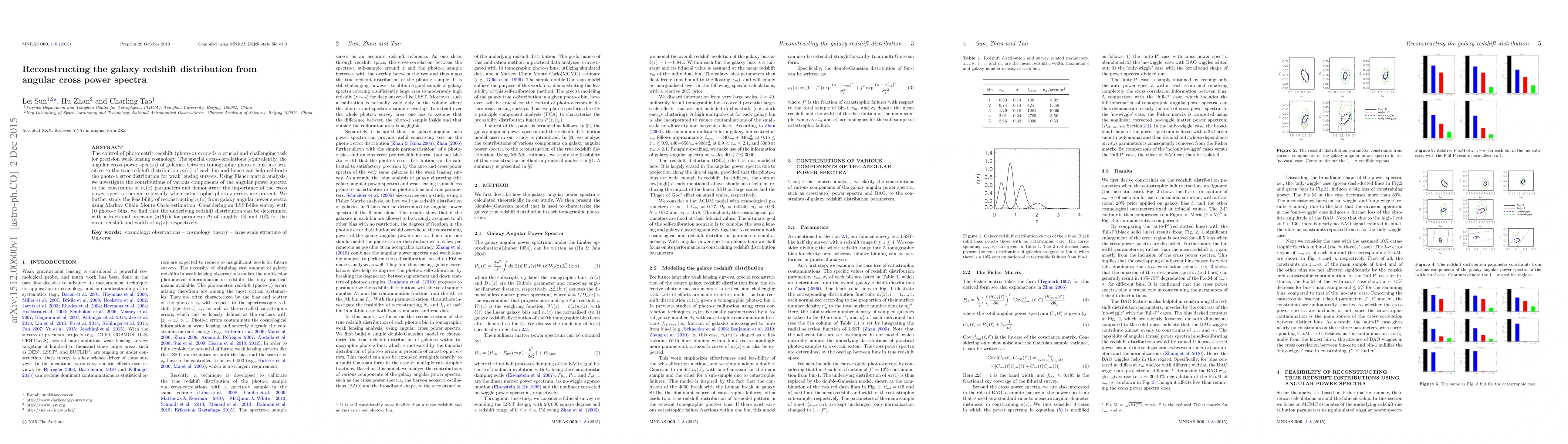 The control of photometric redshift (photo-$z$) errors is a crucial and challenging task for precision weak lensing cosmology. The spacial cross-correlations (equivalently, the angular cross power spectra) of galaxies between tomographic photo-$z$ bins are sensitive to the true redshift distribution $n_i(z)$ of each bin and hence can help calibrate the photo-$z$ error distribution for weak lensing surveys. Using Fisher matrix analysis, we investigate the contributions of various components of the angular power spectra to the constraints of $n_i(z)$ parameters and demonstrate the importance of the cross power spectra therein, especially when catastrophic photo-$z$ errors are present. We further study the feasibility of reconstructing $n_i(z)$ from galaxy angular power spectra using Markov Chain Monte Carlo estimation. Considering an LSST-like survey with $10$ photo-$z$ bins, we find that the underlying redshift distribution can be determined with a fractional precision ($\sigma(\theta)/\theta$ for parameter $\theta$) of roughly $1\%$ and $10\%$ for the mean redshift and width of $n_i(z)$, respectively.