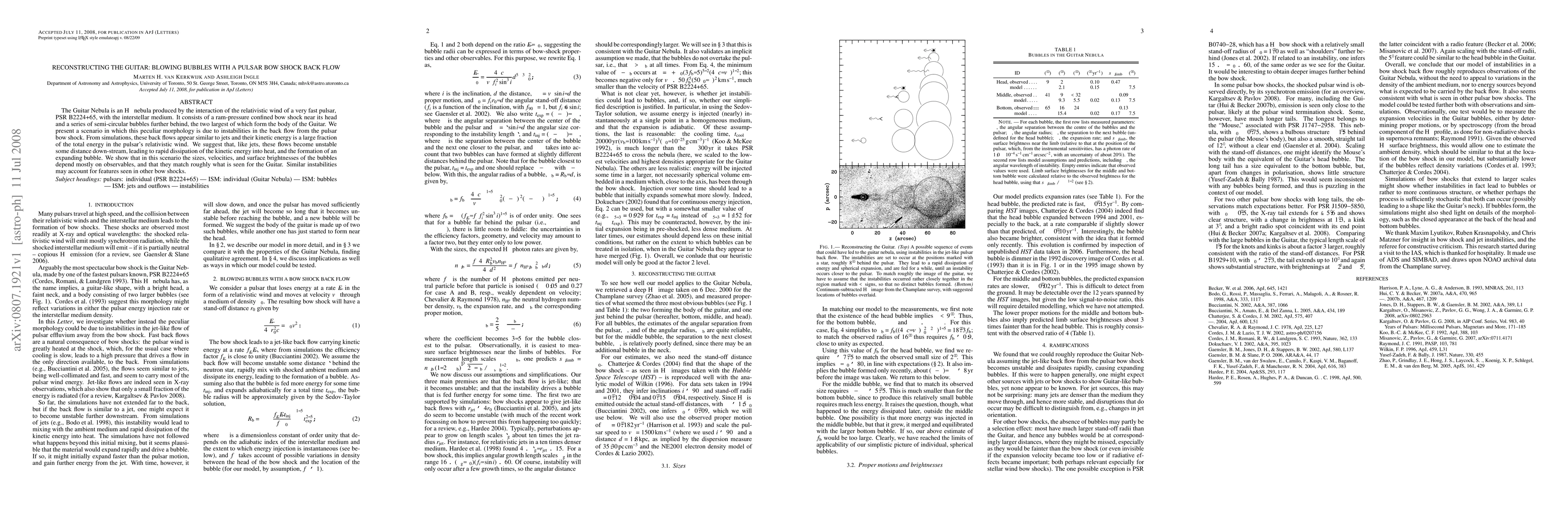 This paper explores the Guitar Nebula's peculiar shape, attributing it to instabilities in the back flow from the pulsar's bow shock, which dissipate kinetic energy into heat and form expanding bubbles. The study suggests that these instabilities may also explain features in other bow shocks.