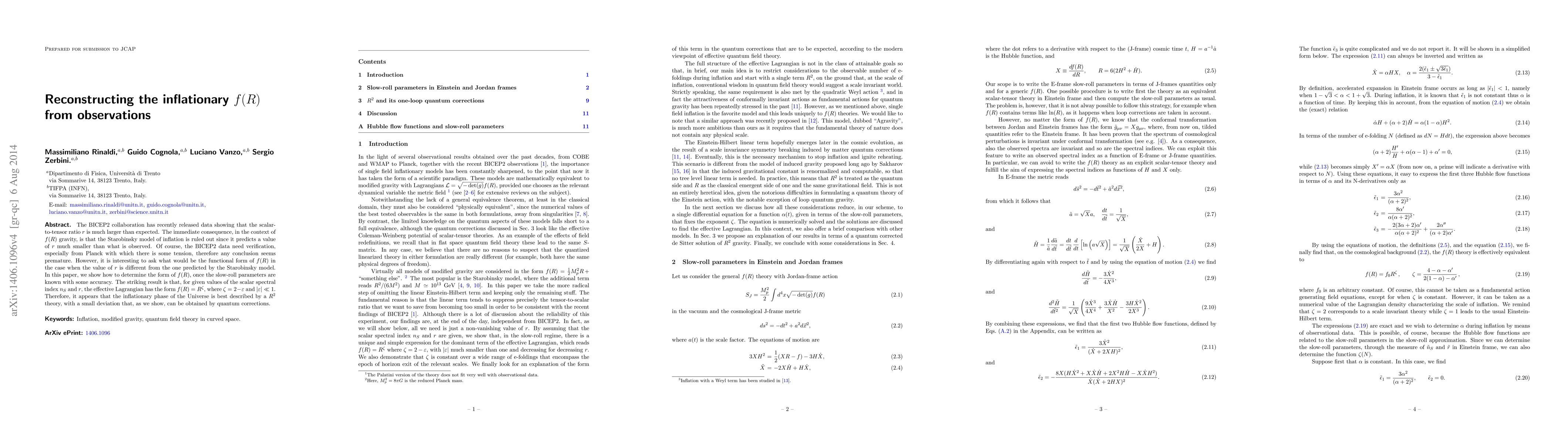 The BICEP2 collaboration has recently released data showing that the scalar-to-tensor ratio $r$ is much larger than expected. The immediate consequence, in the context of $f(R)$ gravity, is that the Starobinsky model of inflation is ruled out since it predicts a value of $r$ much smaller than what is observed. Of course, the BICEP2 data need verification, especially from Planck with which there is some tension, therefore any conclusion seems premature. However, it is interesting to ask what would be the functional form of $f(R)$ in the case when the value of $r$ is different from the one predicted by the Starobinsky model. In this paper, we show how to determine the form of $f(R)$, once the slow-roll parameters are known with some accuracy. The striking result is that, for given values of the scalar spectral index $n_{S}$ and $r$, the effective Lagrangian has the form $f(R)=R^{\zeta}$, where $\zeta=2-\varepsilon$ and $|\varepsilon|\ll 1$. Therefore, it appears that the inflationary phase of the Universe is best described by a $R^{2}$ theory, with a small deviation that, as we show, can be obtained by quantum corrections.
