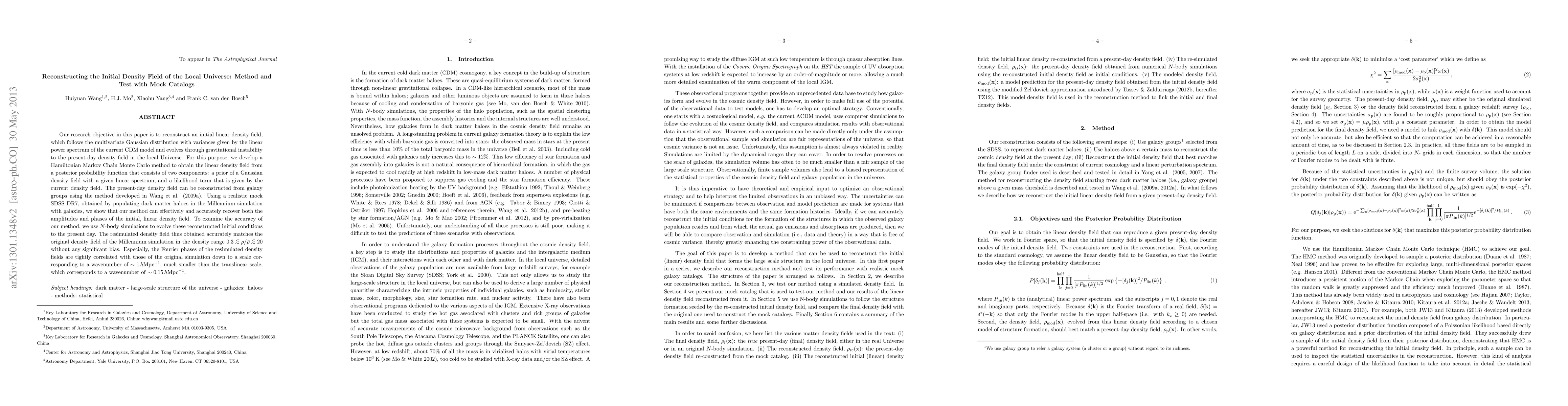 This paper develops a method to reconstruct the initial density field of the local universe using galaxy groups, and finds that it accurately recovers both amplitudes and phases with high precision.