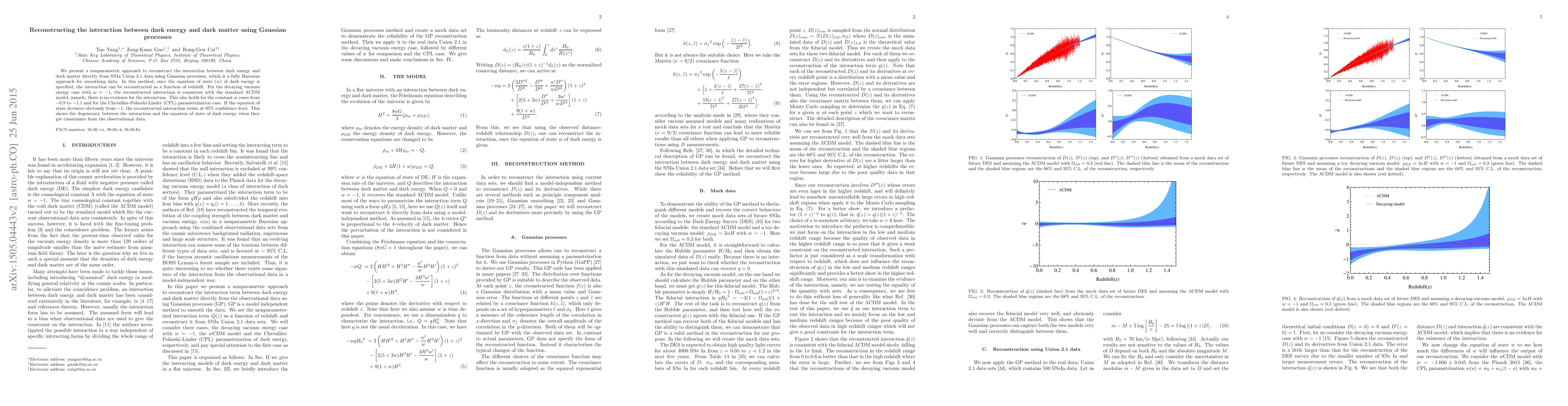This paper uses Gaussian processes to reconstruct the interaction between dark energy and dark matter from SNIa data, finding no evidence for interaction under standard $\Lambda$CDM model assumptions. Deviations from $w=-1$ suggest a potential interaction at high confidence, highlighting the model's sensitivity to the equation of state.
