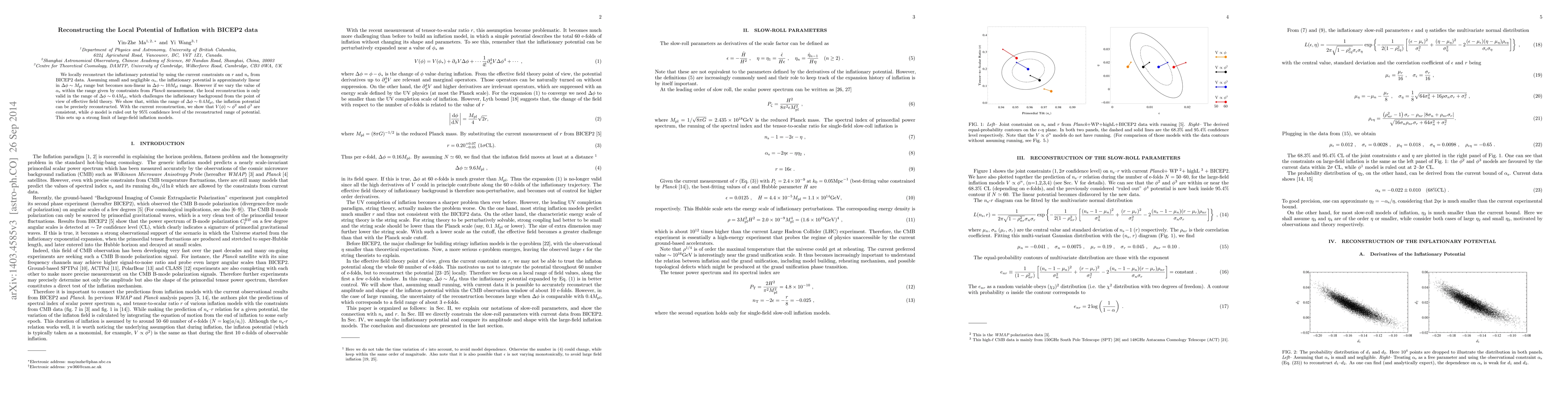 We locally reconstruct the inflationary potential by using the current constraints on $r$ and $n_{\rm s}$ from BICEP2 data. Assuming small and negligible $\alpha_{\rm s}$, the inflationary potential is approximately linear in $\Delta\phi\sim M_{\rm pl}$ range but becomes non-linear in $\Delta\phi\sim 10 M_{\rm pl}$ range. However if we vary the value of $\alpha_{\rm s}$ within the range given by constraints from {\it Planck} measurement, the local reconstruction is only valid in the range of $\Delta\phi\sim 0.4 M_{\rm pl}$, which challenges the inflationary background from the point of view of effective field theory. We show that, within the range of $\Delta \phi \sim 0.4 M_{\rm pl}$, the inflation potential can be precisely reconstructed. With the current reconstruction, we show that $V(\phi) \sim \phi^{2}$ and $\phi^{3}$ are consistent, while $\phi$ model is ruled out by $95\%$ confidence level of the reconstructed range of potential. This sets up a strong limit of large-field inflation models.