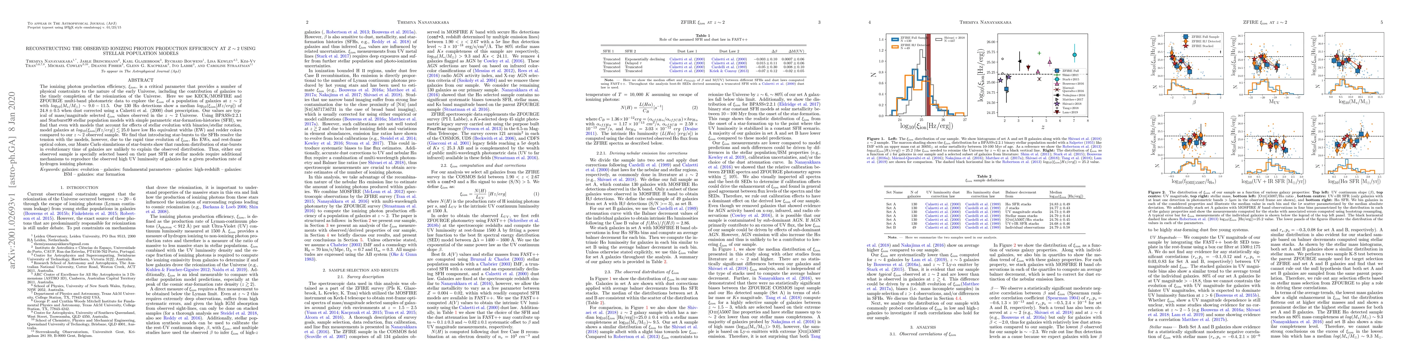This paper investigates the ionizing photon production efficiency ($\xi_{ion}$) in galaxies at $z\sim2$ using KECK/MOSFIRE and ZFOURGE data, finding a median $\xi_{ion}$ of $24.8\pm0.5$. It concludes that standard stellar population models struggle to match observed properties unless starbursts are incorporated, suggesting either a special selection of galaxies or the need for additional mechanisms in stellar models.