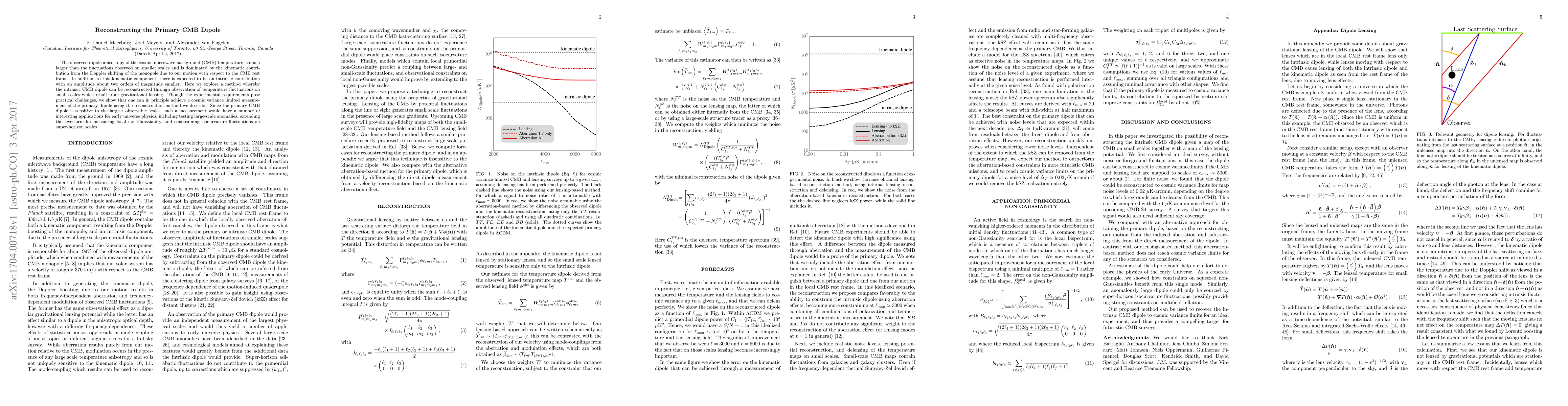 This paper proposes a method to reconstruct the intrinsic primary cosmic microwave background (CMB) dipole, which is overshadowed by the Doppler shift due to our motion. It suggests using small-scale temperature fluctuations from gravitational lensing to achieve a cosmic variance limited measurement, with potential applications in early universe physics.
