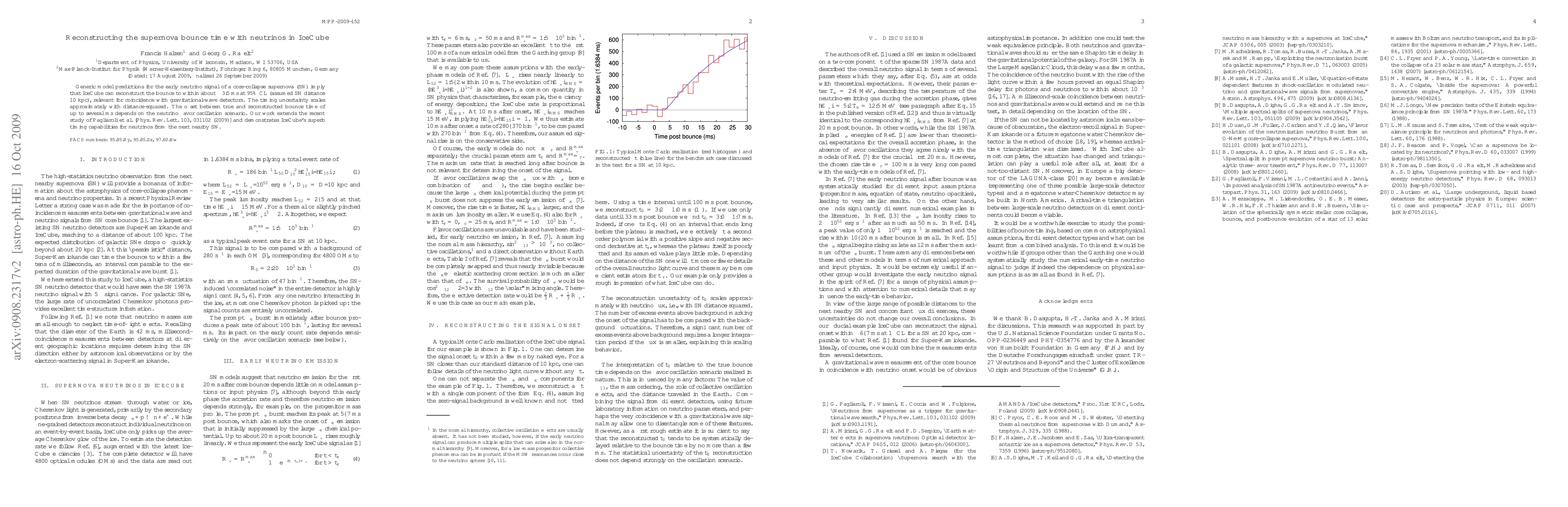 Generic model predictions for the early neutrino signal of a core-collapse supernova (SN) imply that IceCube can reconstruct the bounce to within about +/- 3.5 ms at 95% CL (assumed SN distance 10 kpc), relevant for coincidence with gravitational-wave detectors. The timing uncertainty scales approximately with distance-squared. The offset between true and reconstructed bounce time of up to several ms depends on the neutrino flavor oscillation scenario. Our work extends the recent study of Pagliaroli et al. [PRL 103, 031102 (2009)] and demonstrates IceCube's superb timing capabilities for neutrinos from the next nearby SN.