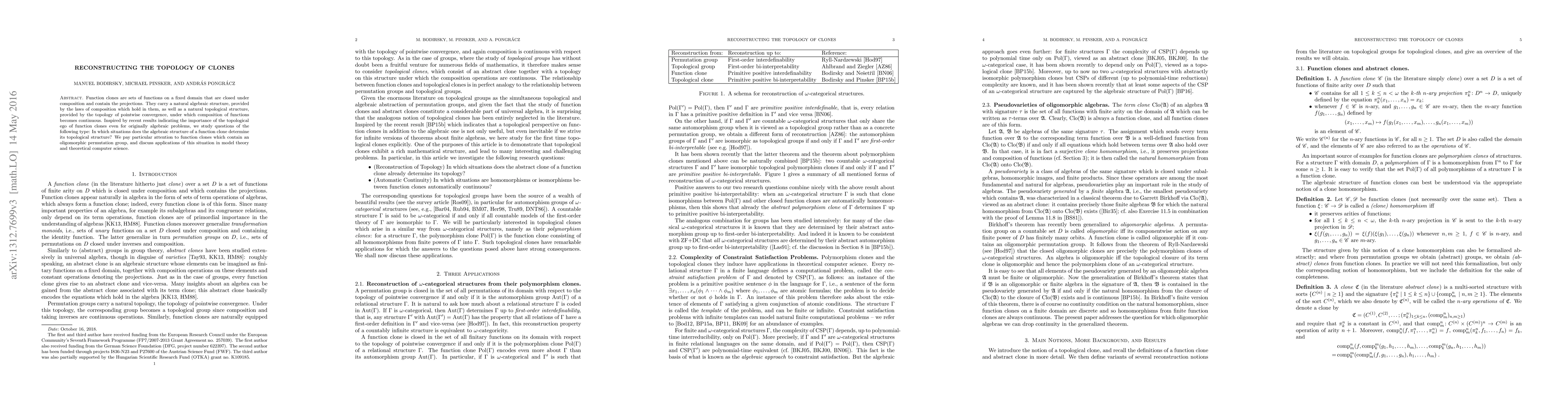 Researchers investigated how the algebraic structure of function clones determines their topological structure, with a focus on oligomorphic permutation groups, revealing implications for model theory and theoretical computer science.