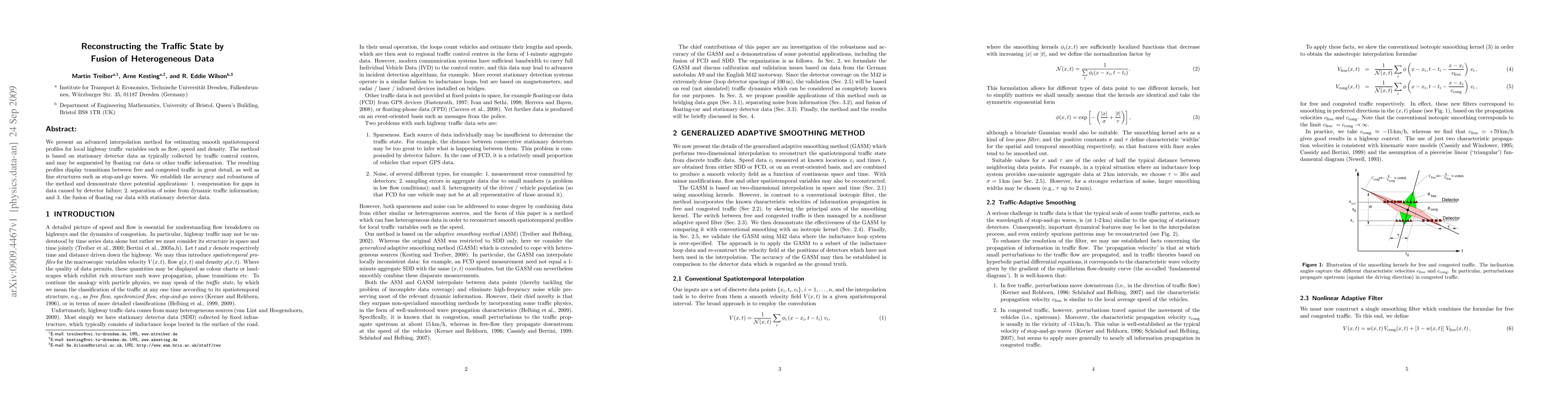 This paper introduces an advanced interpolation method to estimate detailed spatiotemporal profiles of highway traffic variables using stationary detector data, optionally enhanced by floating car data. The method demonstrates accuracy in reconstructing traffic states, including transitions between free and congested traffic, and has applications in data gap compensation, noise separation, and the fusion of different data sources.
