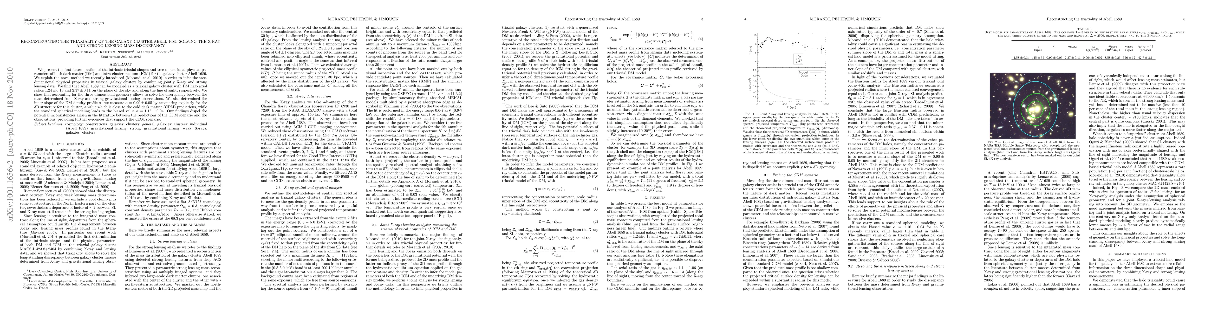 This paper reconstructs the triaxiality of galaxy cluster Abell 1689, revealing its dark matter and intra-cluster medium shapes using a novel method combining X-ray and strong lensing data. The findings resolve discrepancies between mass estimates from X-ray and lensing observations, supporting the cold dark matter scenario.