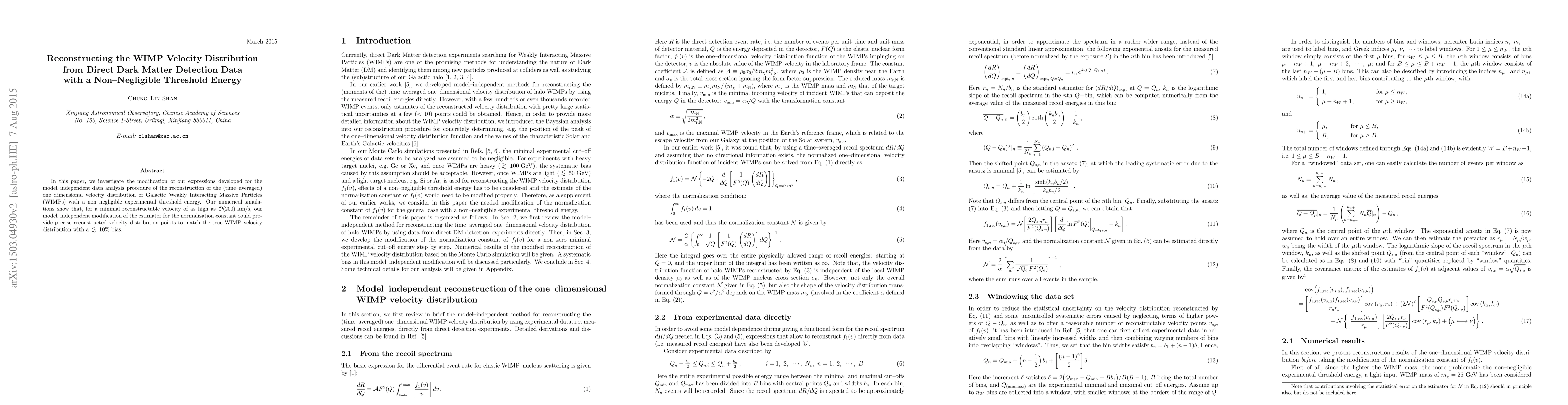 Researchers developed a method to accurately reconstruct the velocity distribution of WIMPs in direct dark matter detection experiments with a non-negligible threshold energy, reducing bias to less than 10%. The technique improves upon existing model-independent analysis procedures.