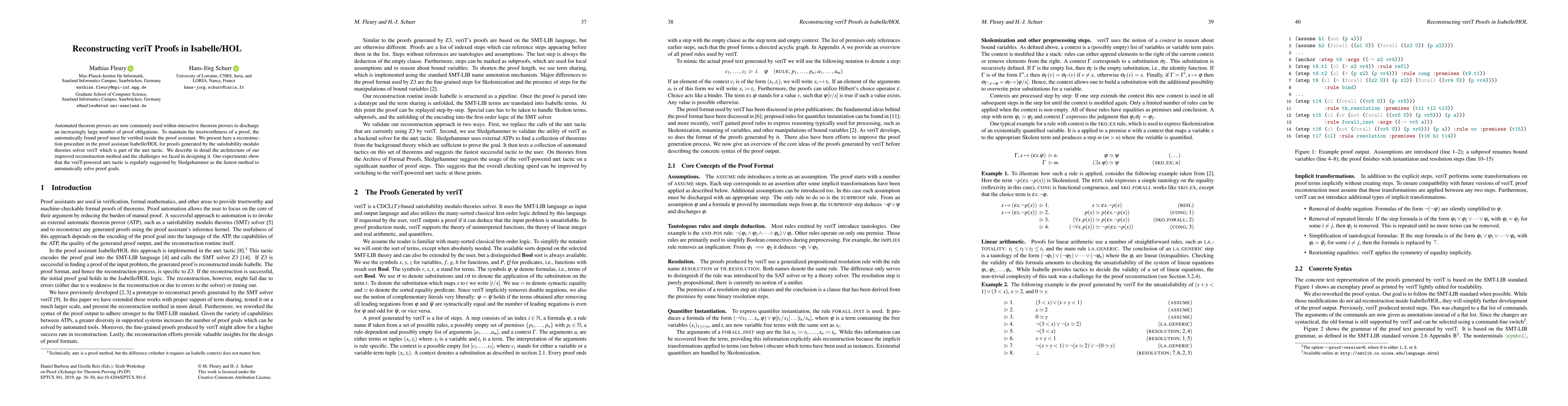 This paper presents a reconstruction procedure in Isabelle/HOL for proofs generated by the veriT solver, ensuring the trustworthiness of automated proofs. The authors describe the architecture of their improved method and demonstrate its effectiveness, showing that the veriT-powered SMT tactic is often the fastest for solving proof goals suggested by Sledgehammer.