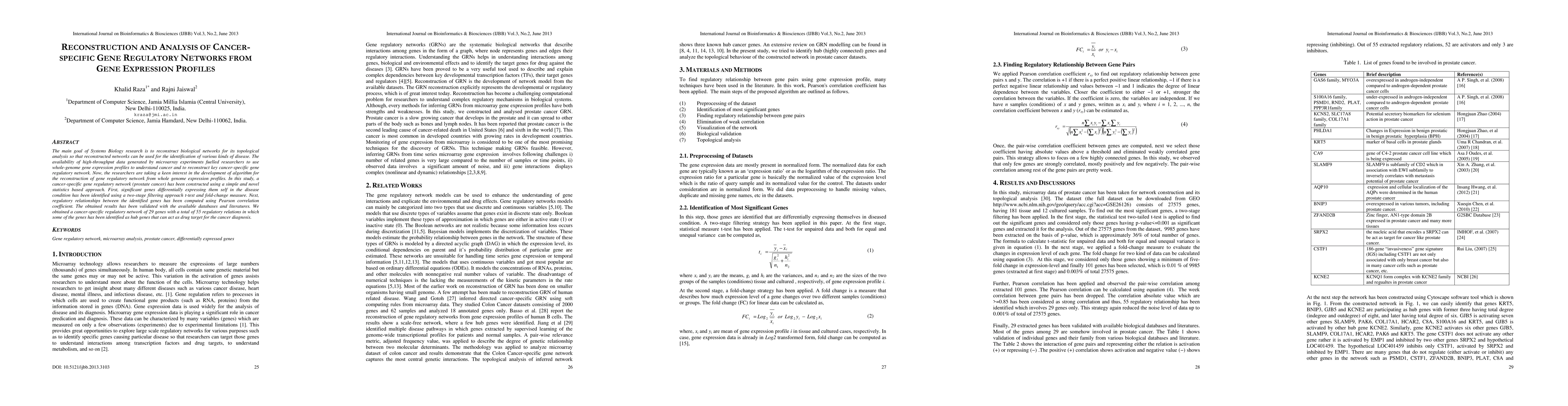 This study reconstructs a cancer-specific gene regulatory network for prostate cancer using a novel statistical approach, identifying 29 genes with significant differential expression and 55 regulatory relationships, validated against existing databases, and highlighting potential hub genes for drug targets.