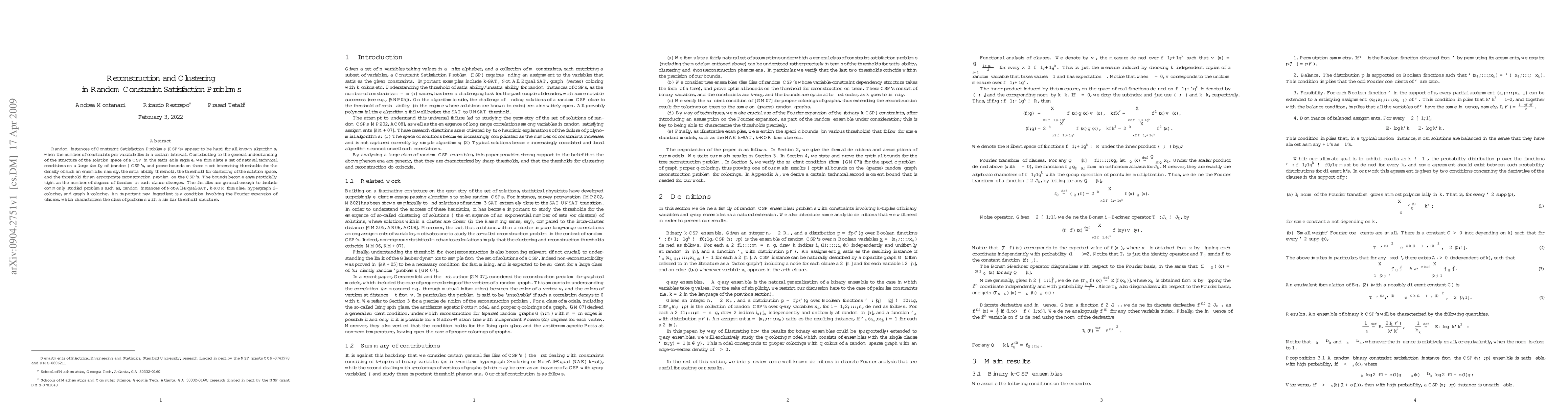 Random instances of Constraint Satisfaction Problems (CSP's) appear to be hard for all known algorithms, when the number of constraints per variable lies in a certain interval. Contributing to the general understanding of the structure of the solution space of a CSP in the satisfiable regime, we formulate a set of natural technical conditions on a large family of (random) CSP's, and prove bounds on three most interesting thresholds for the density of such an ensemble: namely, the satisfiability threshold, the threshold for clustering of the solution space, and the threshold for an appropriate reconstruction problem on the CSP's. The bounds become asymptoticlally tight as the number of degrees of freedom in each clause diverges. The families are general enough to include commonly studied problems such as, random instances of Not-All-Equal-SAT, k-XOR formulae, hypergraph 2-coloring, and graph k-coloring. An important new ingredient is a condition involving the Fourier expansion of clauses, which characterizes the class of problems with a similar threshold structure.