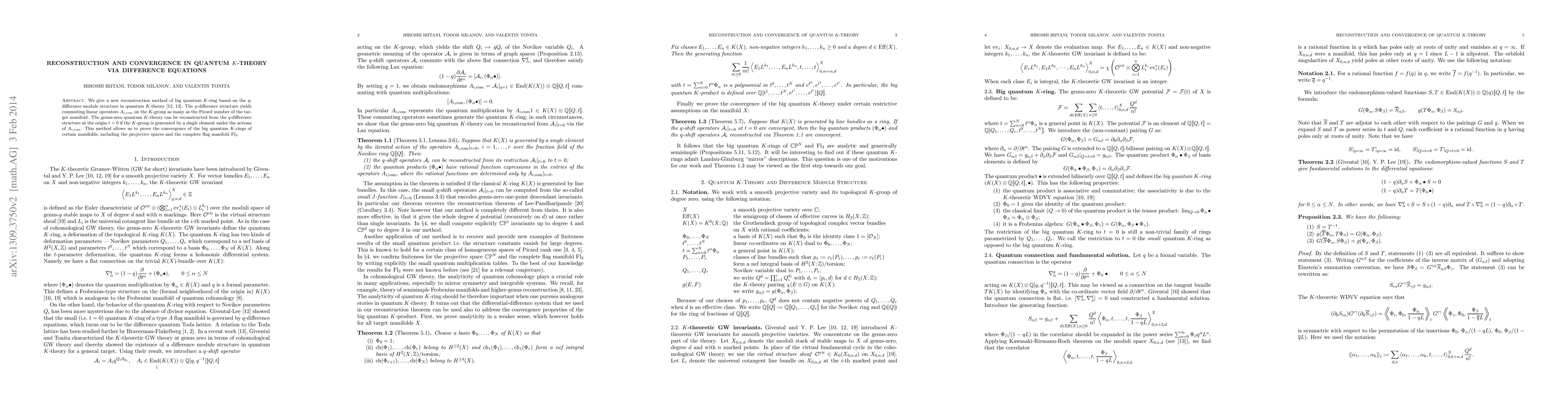 We give a new reconstruction method of big quantum $K$-ring based on the $q$-difference module structure in quantum $K$-theory. The $q$-difference structure yields commuting linear operators $A_{i,\rm com}$ on the $K$-group as many as the Picard number of the target manifold. The genus-zero quantum $K$-theory can be reconstructed from the $q$-difference structure at the origin $t=0$ if the $K$-group is generated by a single element under the actions of $A_{i,\rm com}$. This method allows us to prove the convergence of the big quantum $K$-rings of certain manifolds, including the projective spaces and the complete flag manifold $\operatorname{Fl}_3$.