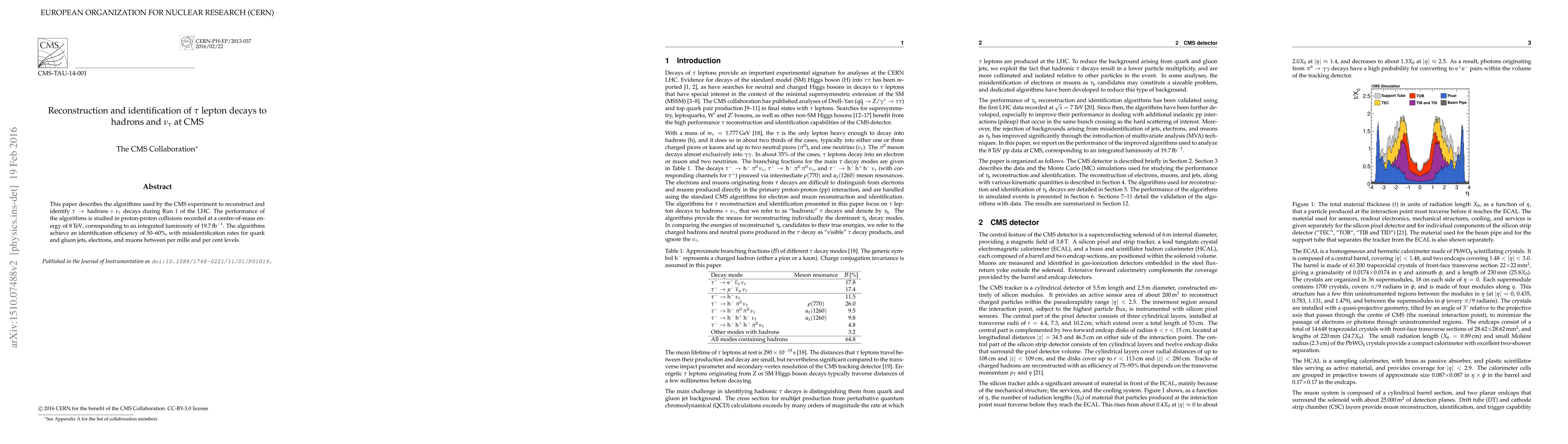 This paper details CMS algorithms for reconstructing tau lepton decays into hadrons and tau neutrinos during LHC Run 1, achieving 50-60% identification efficiency and low misidentification rates for other particles. The study uses proton-proton collision data at 8 TeV and 19.7 inverse femtobarns luminosity.