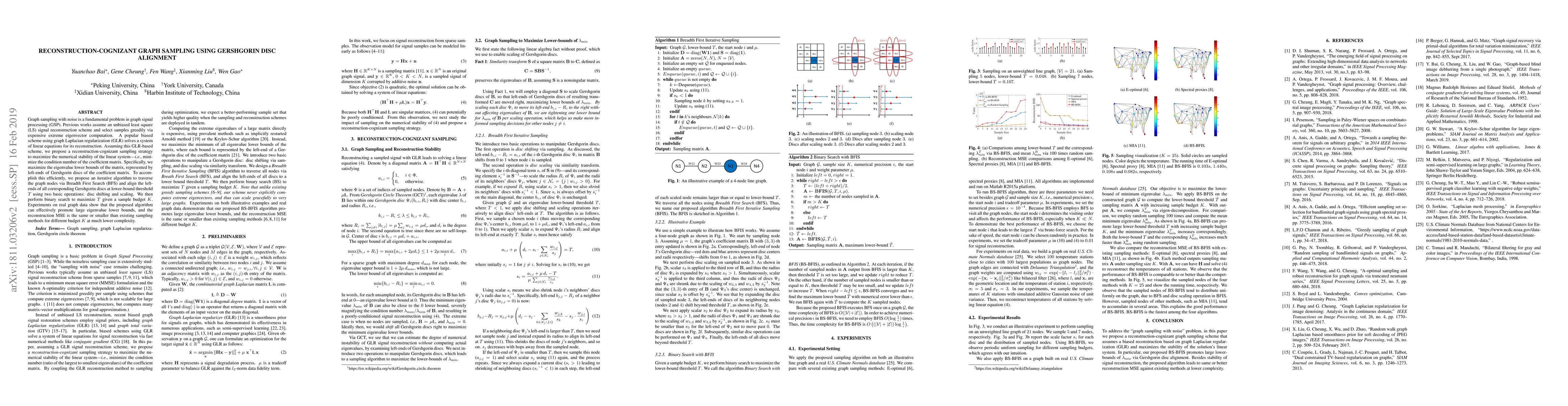 Graph sampling with noise is a fundamental problem in graph signal processing (GSP). Previous works assume an unbiased least square (LS) signal reconstruction scheme and select samples greedily via expensive extreme eigenvector computation. A popular biased scheme using graph Laplacian regularization (GLR) solves a system of linear equations for its reconstruction. Assuming this GLR-based scheme, we propose a reconstruction-cognizant sampling strategy to maximize the numerical stability of the linear system---\textit{i.e.}, minimize the condition number of the coefficient matrix. Specifically, we maximize the eigenvalue lower bounds of the matrix, represented by left-ends of Gershgorin discs of the coefficient matrix. To accomplish this efficiently, we propose an iterative algorithm to traverse the graph nodes via Breadth First Search (BFS) and align the left-ends of all corresponding Gershgorin discs at lower-bound threshold $T$ using two basic operations: disc shifting and scaling. We then perform binary search to maximize $T$ given a sample budget $K$. Experiments on real graph data show that the proposed algorithm can effectively promote large eigenvalue lower bounds, and the reconstruction MSE is the same or smaller than existing sampling methods for different budget $K$ at much lower complexity.