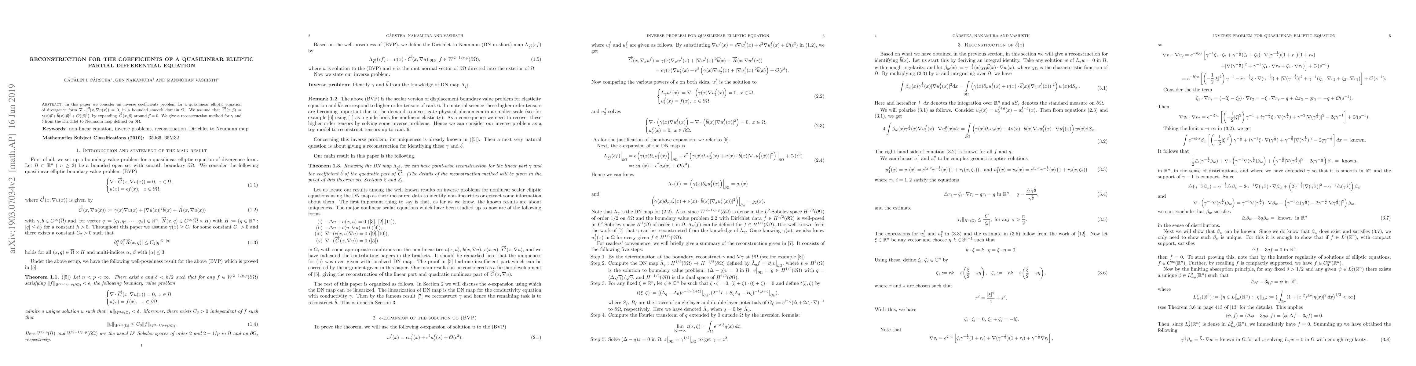 This paper presents a method for reconstructing the coefficients $\gamma$ and $\vec{b}$ in a quasilinear elliptic partial differential equation from the Dirichlet to Neumann map on the boundary. The method leverages the expansion of the coefficient function around zero.