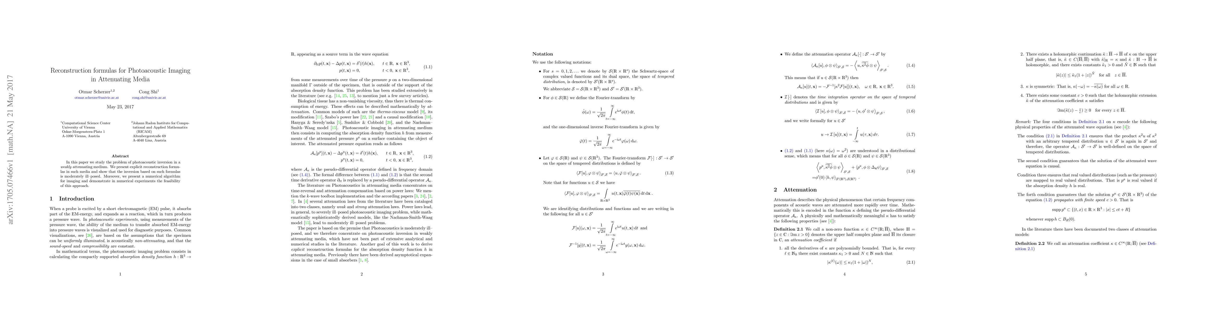 This paper develops explicit reconstruction formulas for photoacoustic imaging in weakly attenuating media, highlighting the moderately ill-posed nature of the inversion problem. It also presents a numerical algorithm and demonstrates its feasibility through numerical experiments.